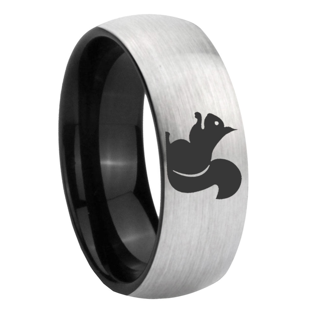 Intruding 6, 8mm Squirrel Dome Tungsten Carbide Gray And Black Wedding Band Mens . Offer in both 6mm and 8mm band width Gray And Black plated finished from size 5 to 14