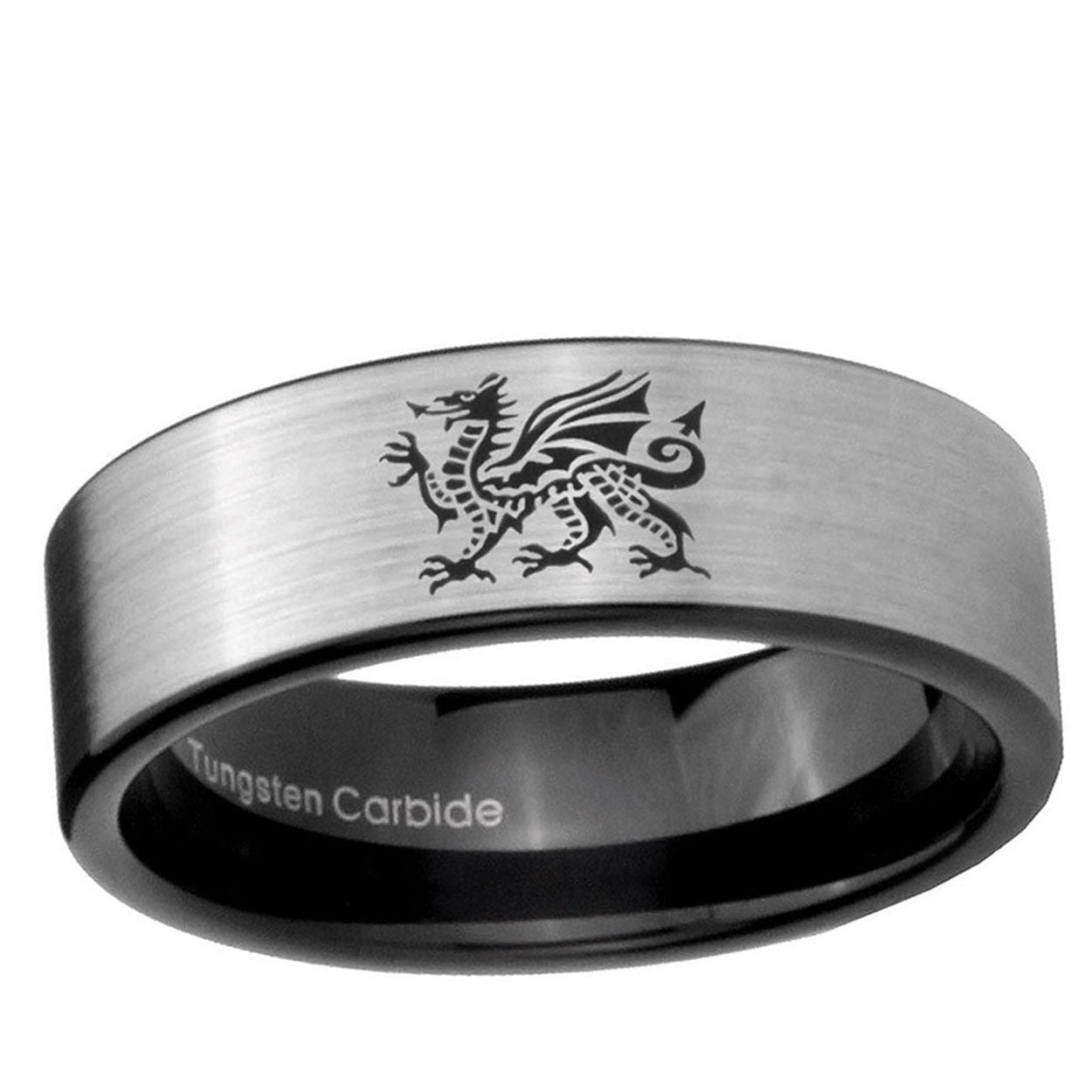 Intruding 6, 8mm Dragon Pipe Cut Brushed Silver Tungsten Carbide Mens Engagement Band . Offer in both 6mm and 8mm band width brushed silver and black plated finished from size 5 to 14