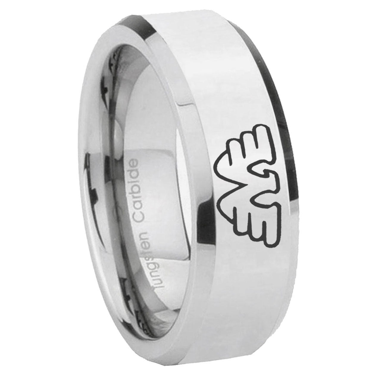 Intruding 5, 8mm Waylon Jennings Beveled Edges Silver Tungsten Carbide Mens Wedding Ring . Offer in both 5mm and 8mm band width polished silver finished from size 4 to 14