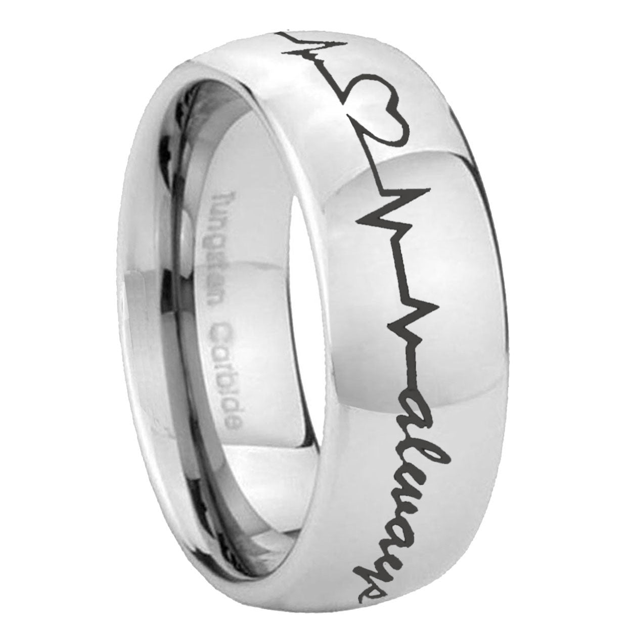 5, 8mm Heart Beat forever Heart always Mirror Dome Tungsten Wedding Band Ring
