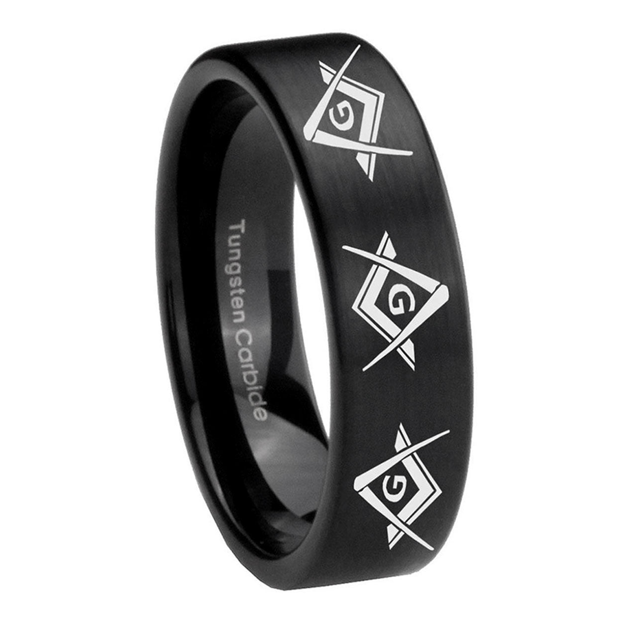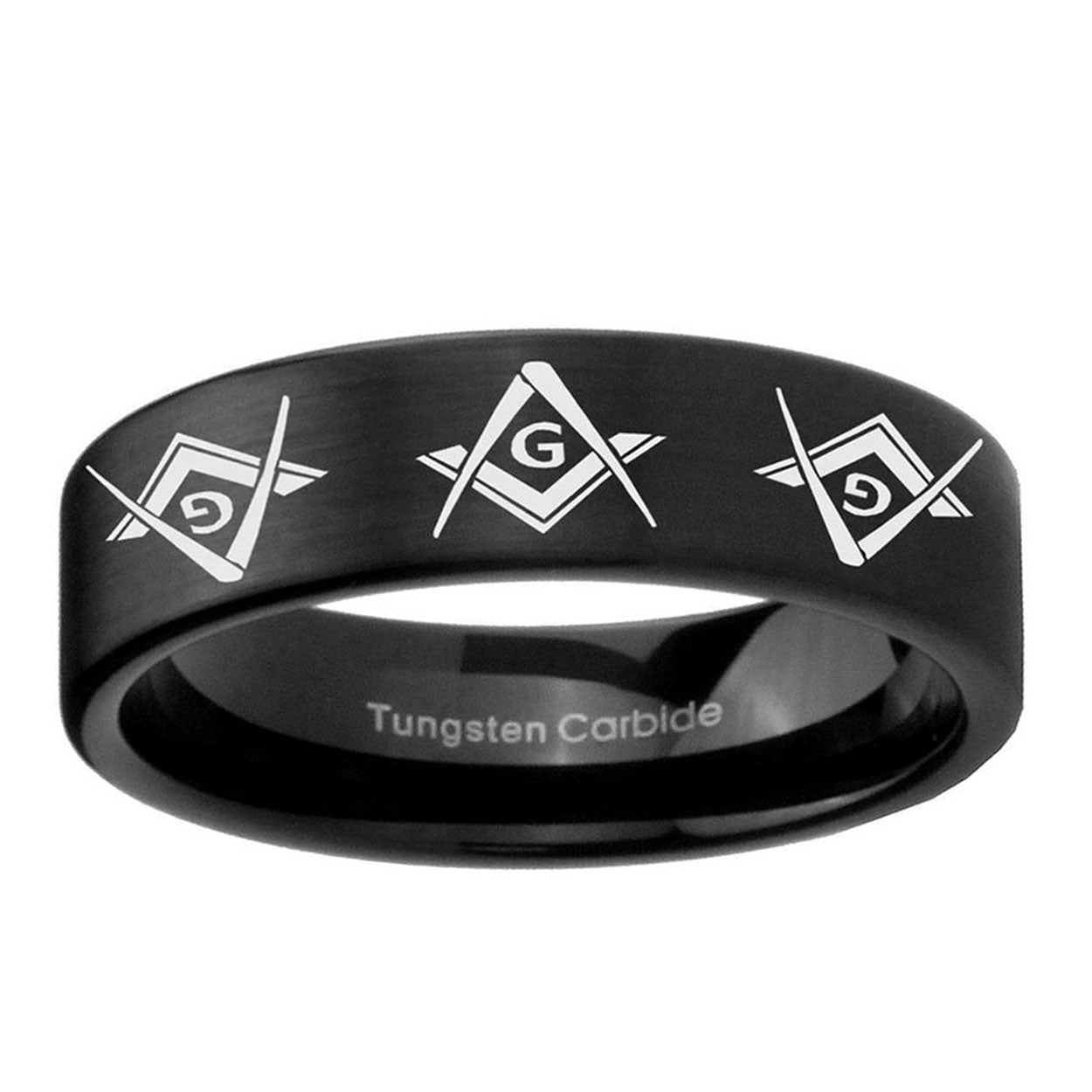 Intruding 6, 8mm Master Mason Masonic Pipe Cut Brush Black Tungsten Carbide Engraved Ring . Offer in both 6mm and 8mm band width brushed black plated finished from size 5 to 14