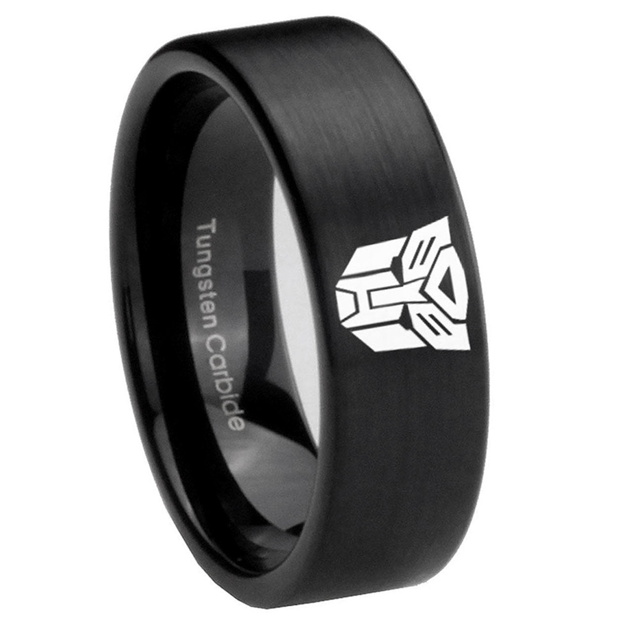 Intruding 6, 8mm Transformers Autobot Pipe Cut Brush Black Tungsten Wedding Band Ring . Offer in both 6mm and 8mm band width brushed black plated finished from size 5 to 14