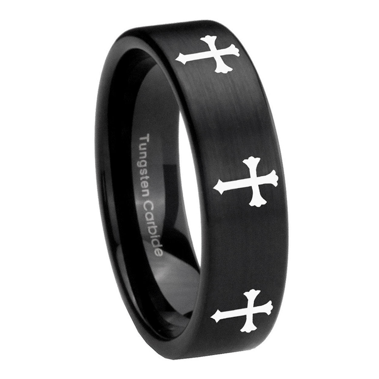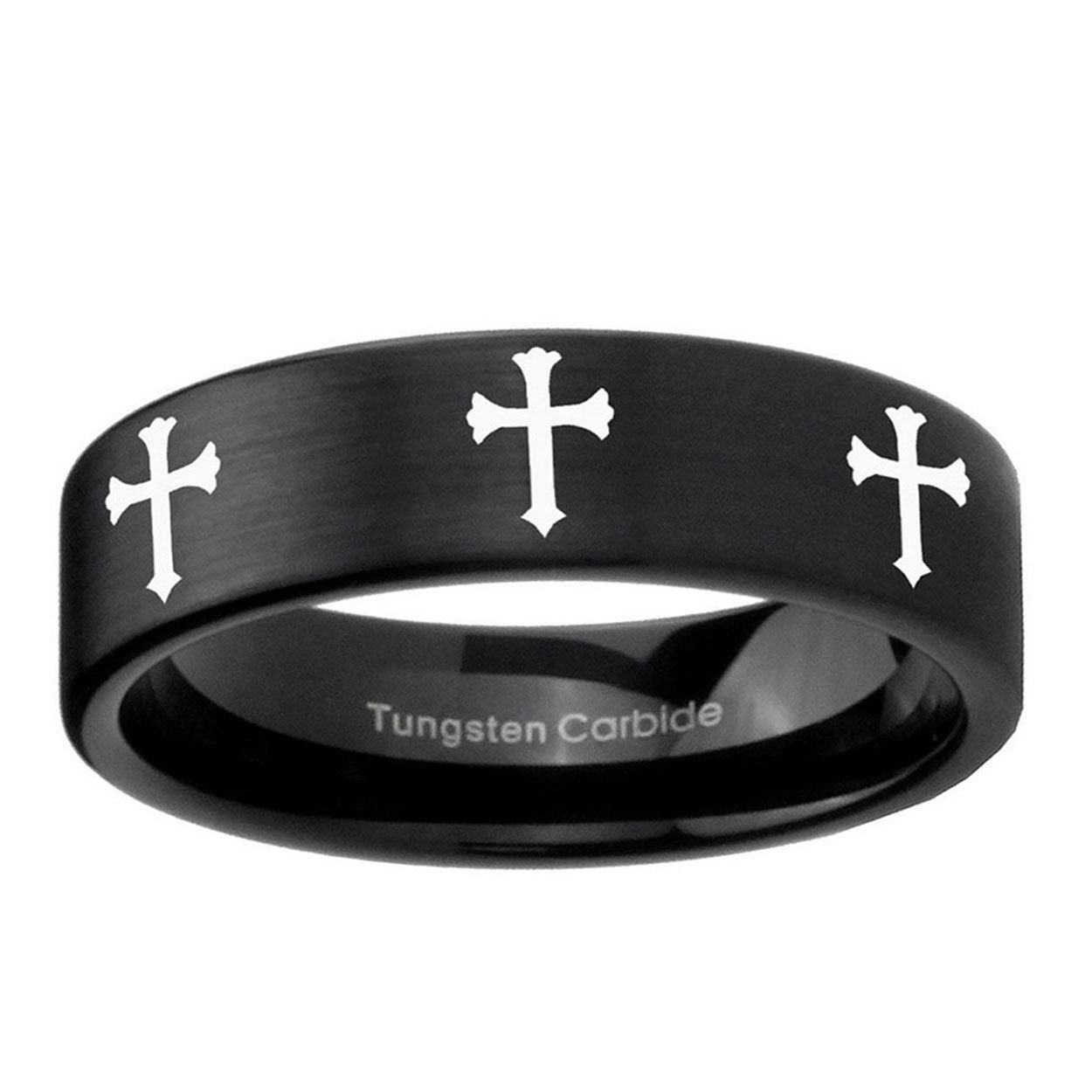 6, 8mm Multiple Christian Cross Pipe Cut Brush Black Tungsten Carbide Promise Ring