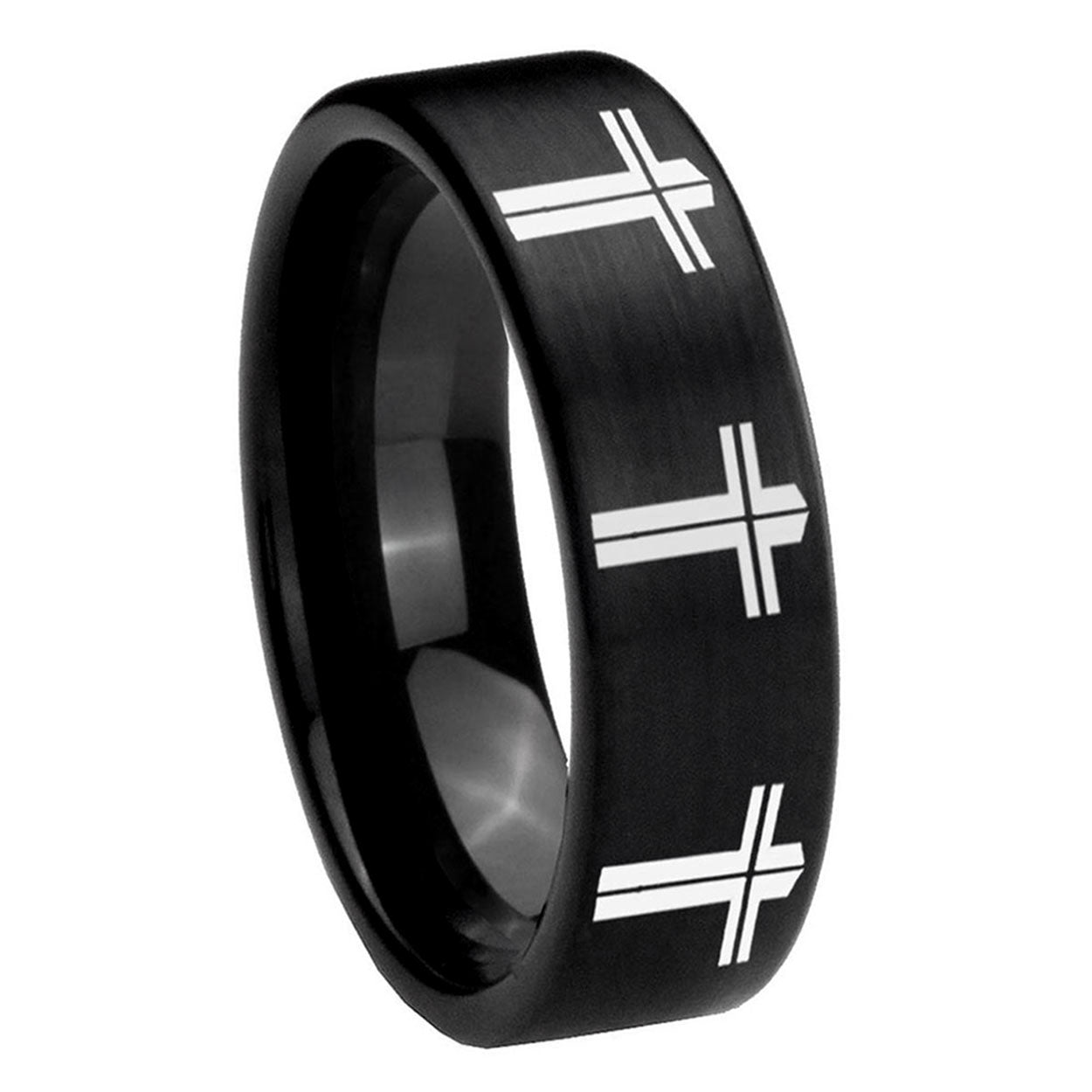 Intruding 6, 8mm Multiple Christian Cross Pipe Cut Brush Black Tungsten Wedding Band Mens . Offer in both 6mm and 8mm band width brushed black plated finished from size 5 to 14