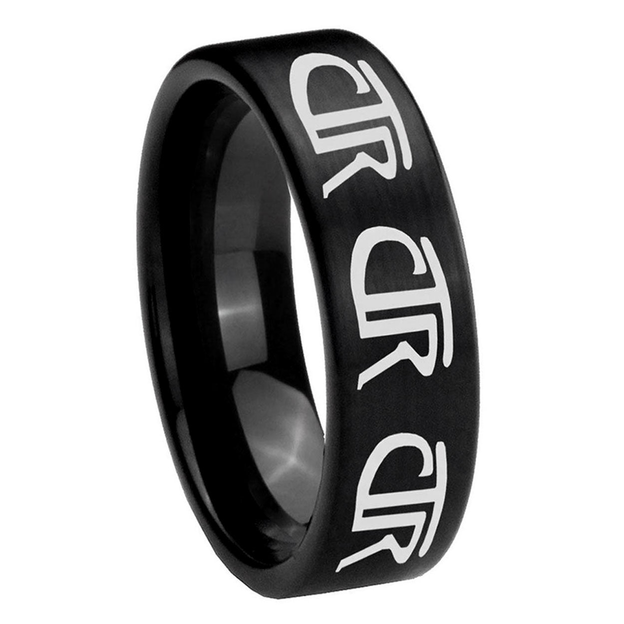 Intruding 6, 8mm Multiple CTR Pipe Cut Brush Black Tungsten Carbide Mens Engagement Band . Offer in both 6mm and 8mm band width brushed black plated finished from size 5 to 14