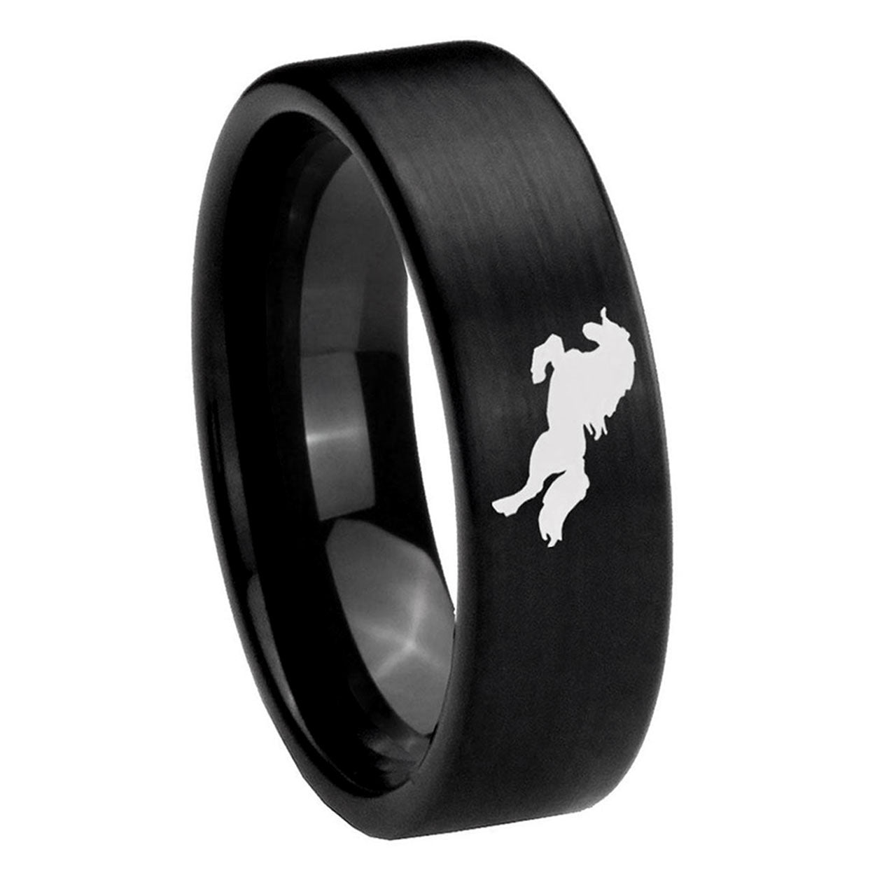 6, 8mm Horse Pipe Cut Brush Black Tungsten Carbide Wedding Engagement Ring