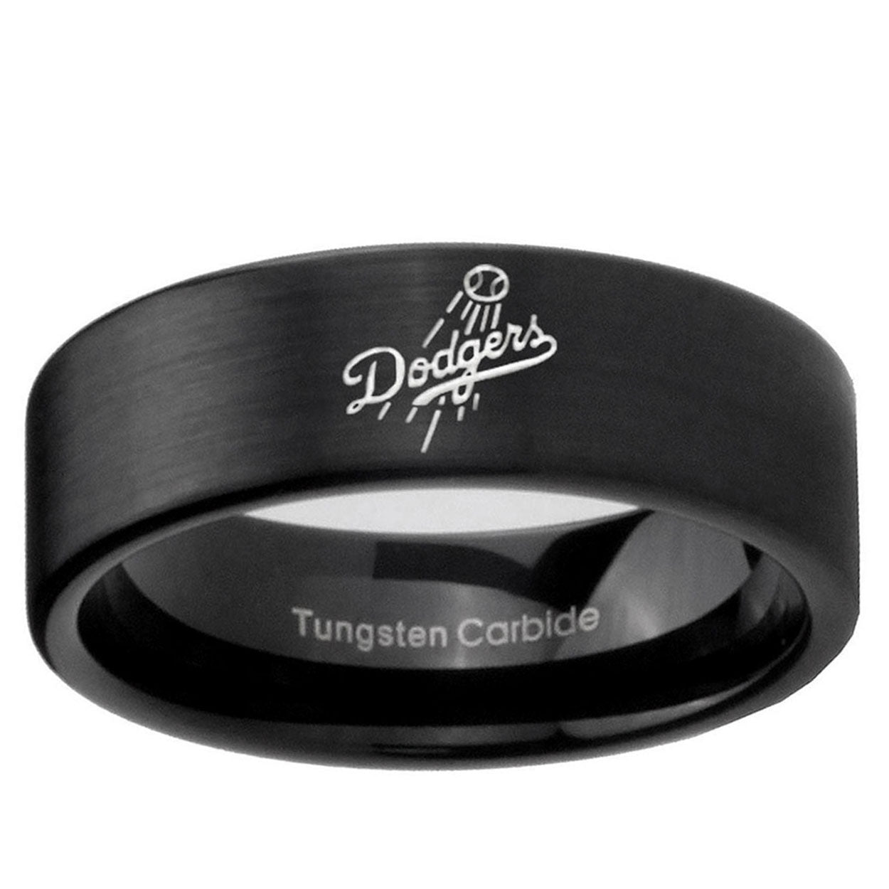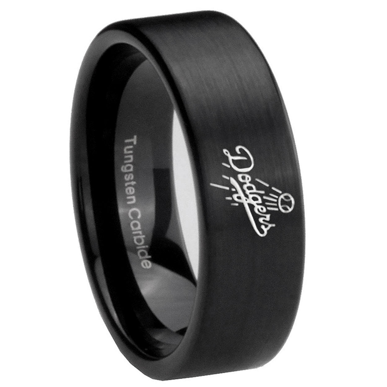 Intruding 6, 8mm LA Dogers MLB Baseball Pipe Cut Brush Black Tungsten Mens Anniversary Ring . Offer in both 6mm and 8mm band width brushed black plated finished from size 5 to 14
