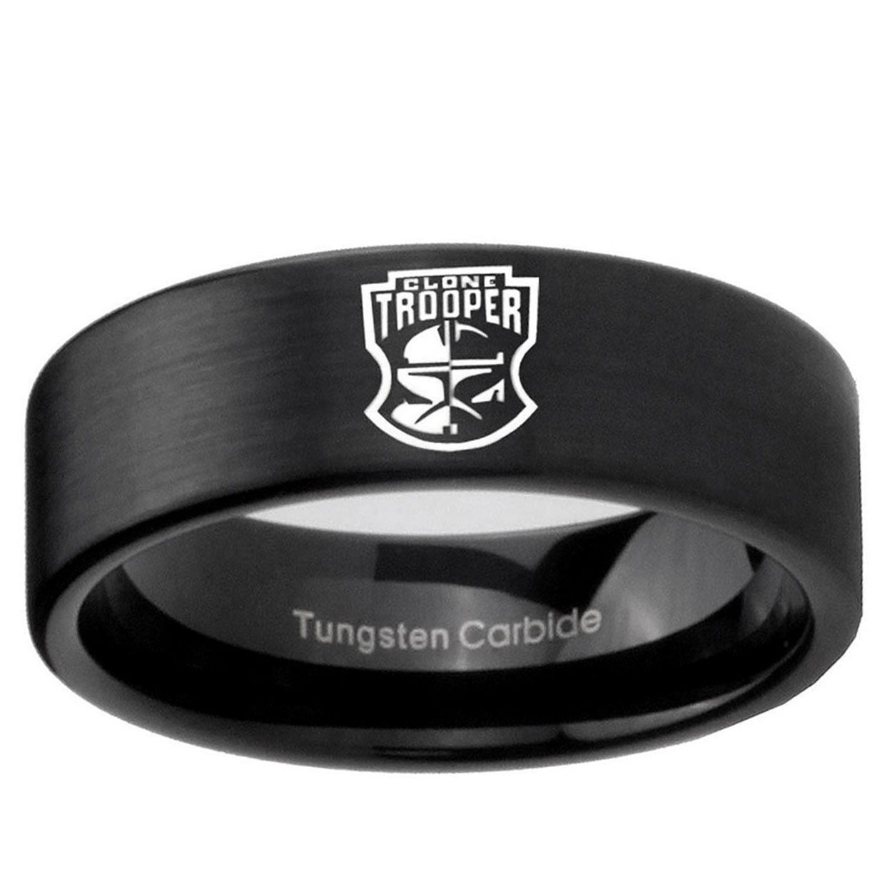 Intruding 6, 8mm Clone Trooper Pipe Cut Brush Black Tungsten Men's Engagement Ring . Offer in both 6mm and 8mm band width brushed black plated finished from size 5 to 14