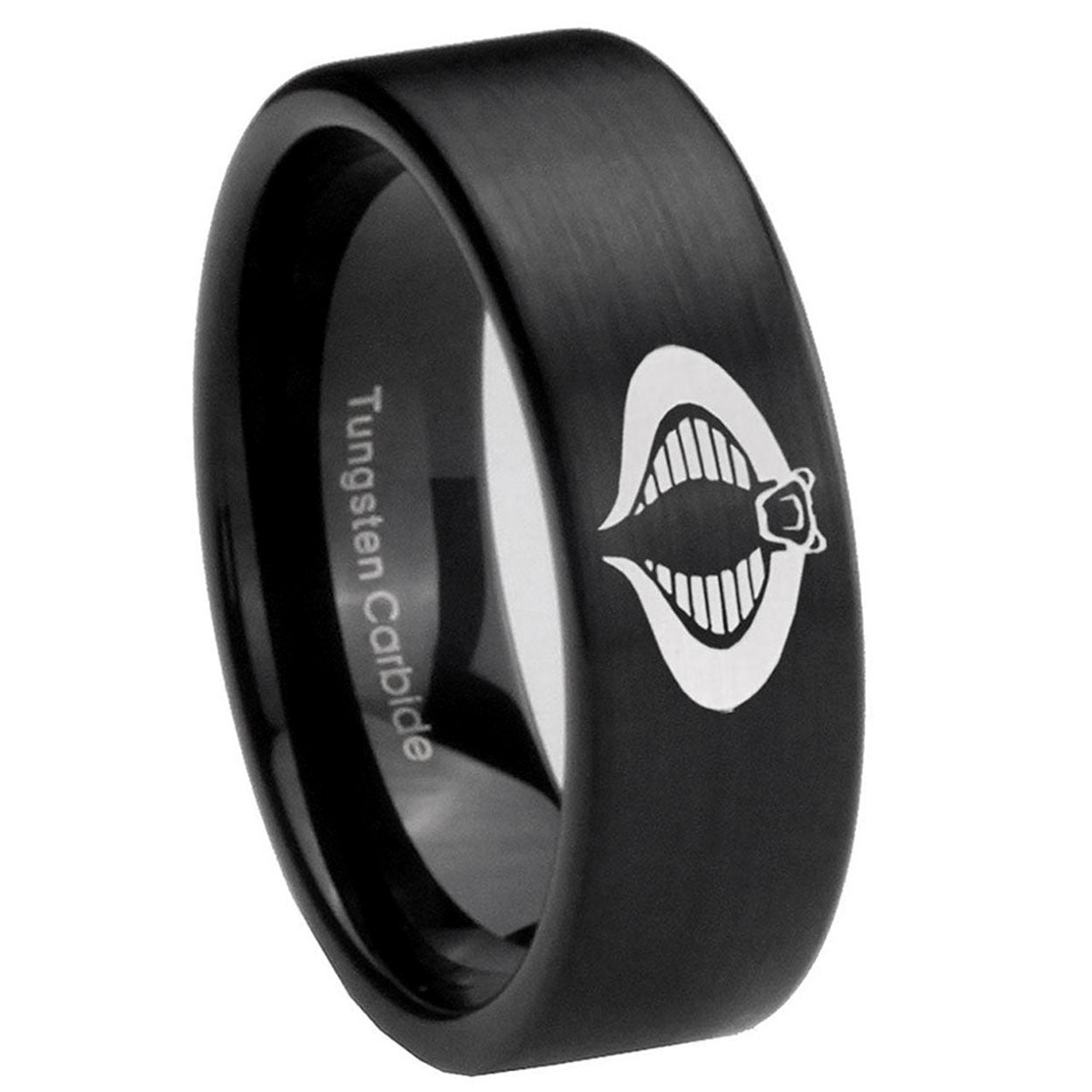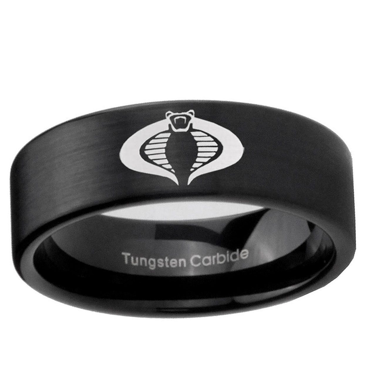 Intruding 6, 8mm Cobra Pipe Cut Brush Black Tungsten Carbide Men's Promise Rings . Offer in both 6mm and 8mm band width brushed black plated finished from size 5 to 14