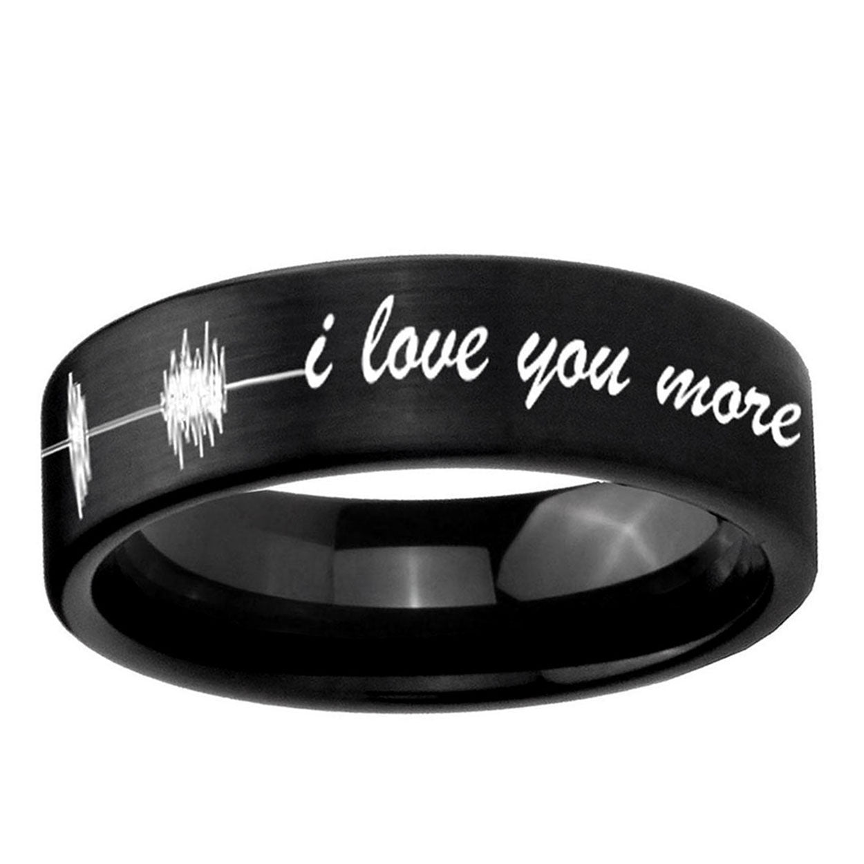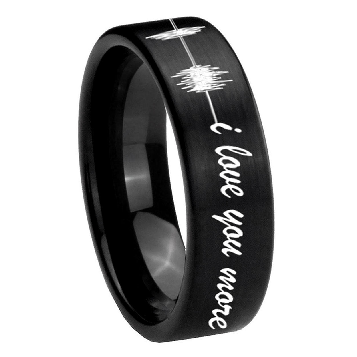 6, 8mm Sound Wave I love you more Pipe Cut Brush Black Tungsten Mens Promise Ring