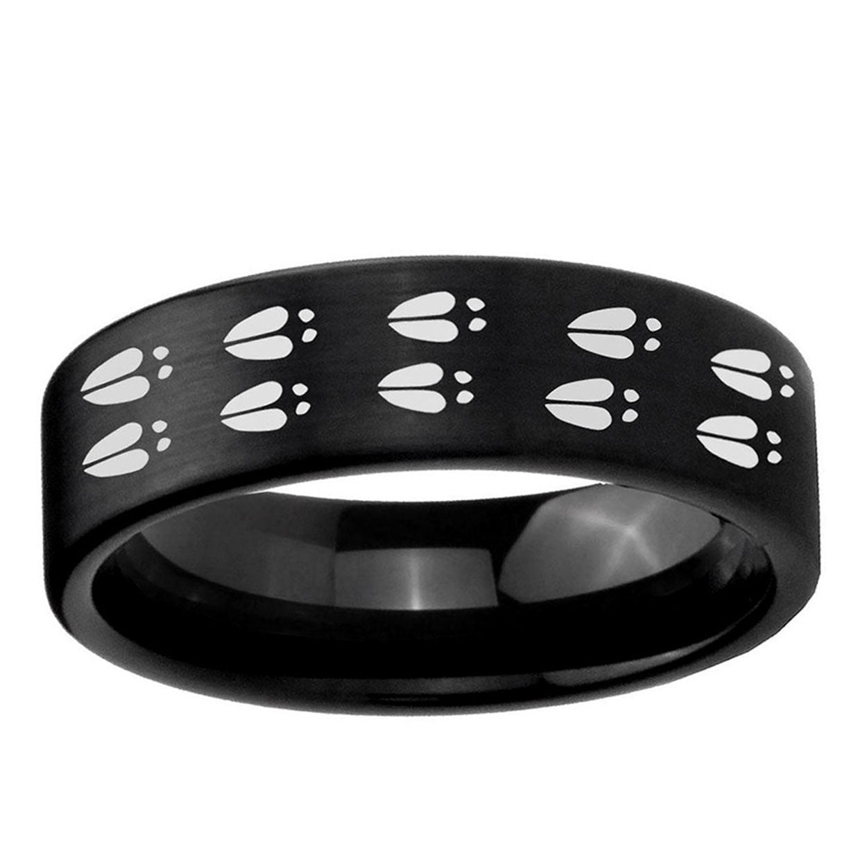 Intruding 6, 8mm Deer Tracks Pipe Cut Brush Black Tungsten Carbide Mens Promise Ring . Offer in both 6mm and 8mm band width brushed black plated finished from size 5 to 14