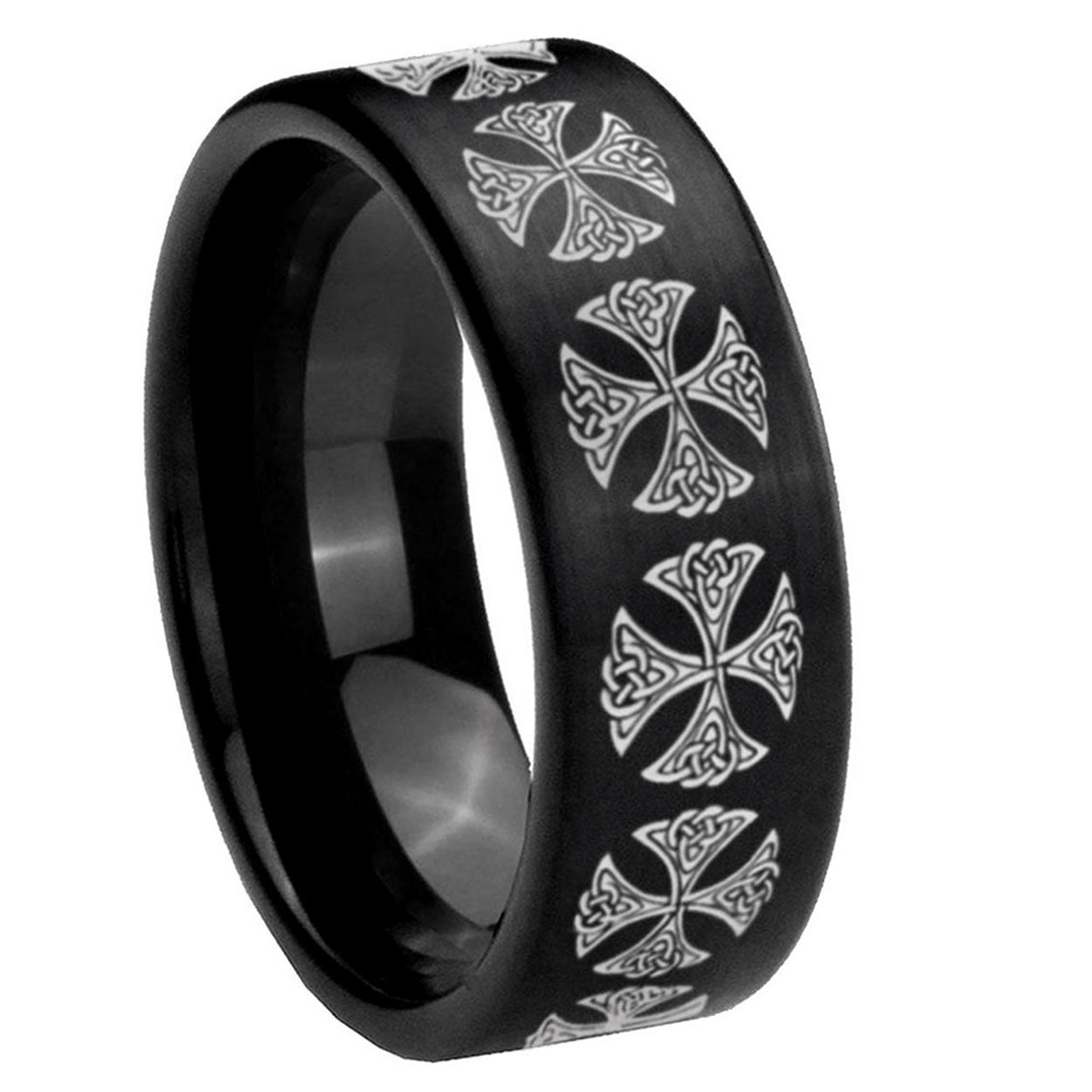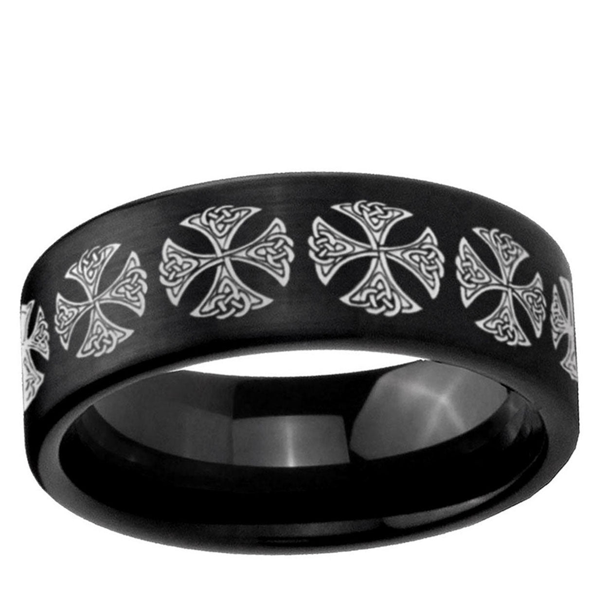 Intruding 6, 8mm Medieval Cross Pipe Cut Brush Black Tungsten Carbide Custom Ring for Men . Offer in both 6mm and 8mm band width brushed black plated finished from size 5 to 14