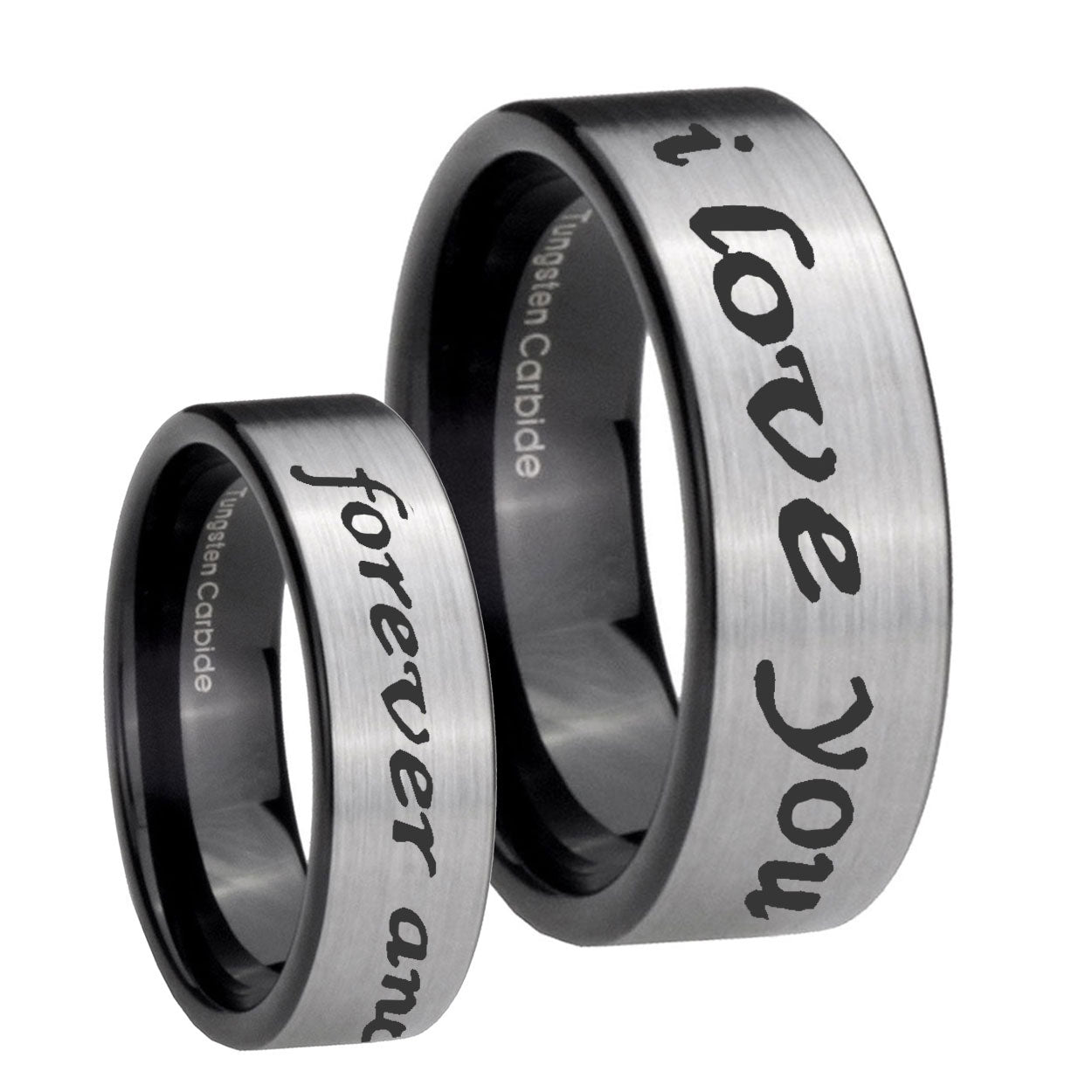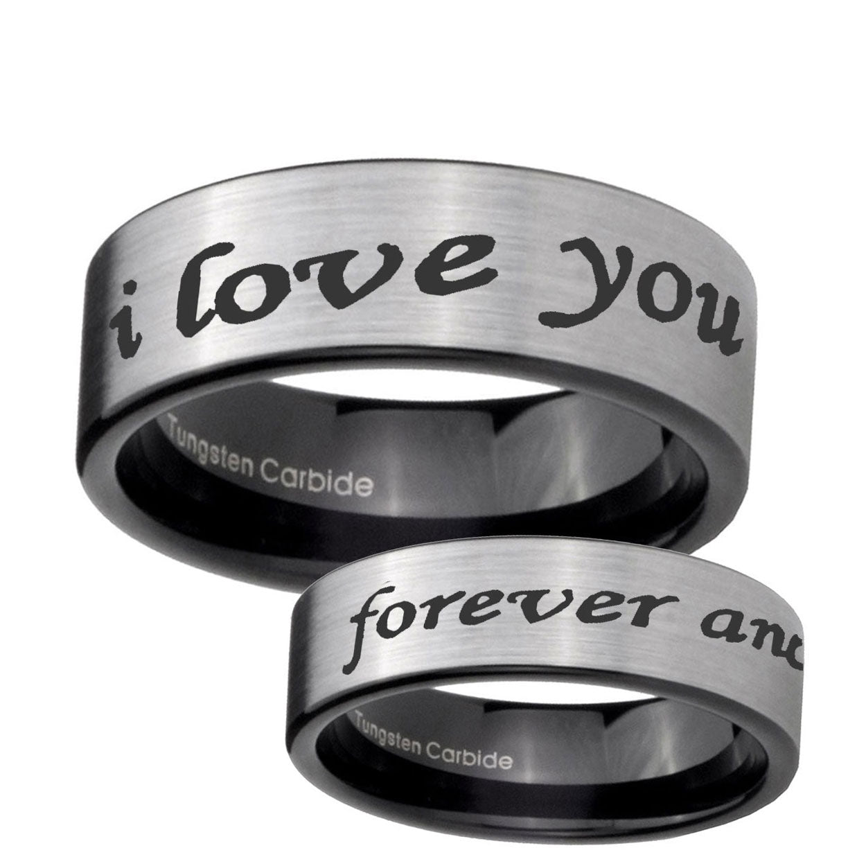 Intruding 6, 8mm I Love You Forever and ever Pipe Cut Brushed Silver Tungsten Mens Bands Ring . Offer in both 6mm and 8mm band width brushed silver and black plated finished from size 5 to 14
