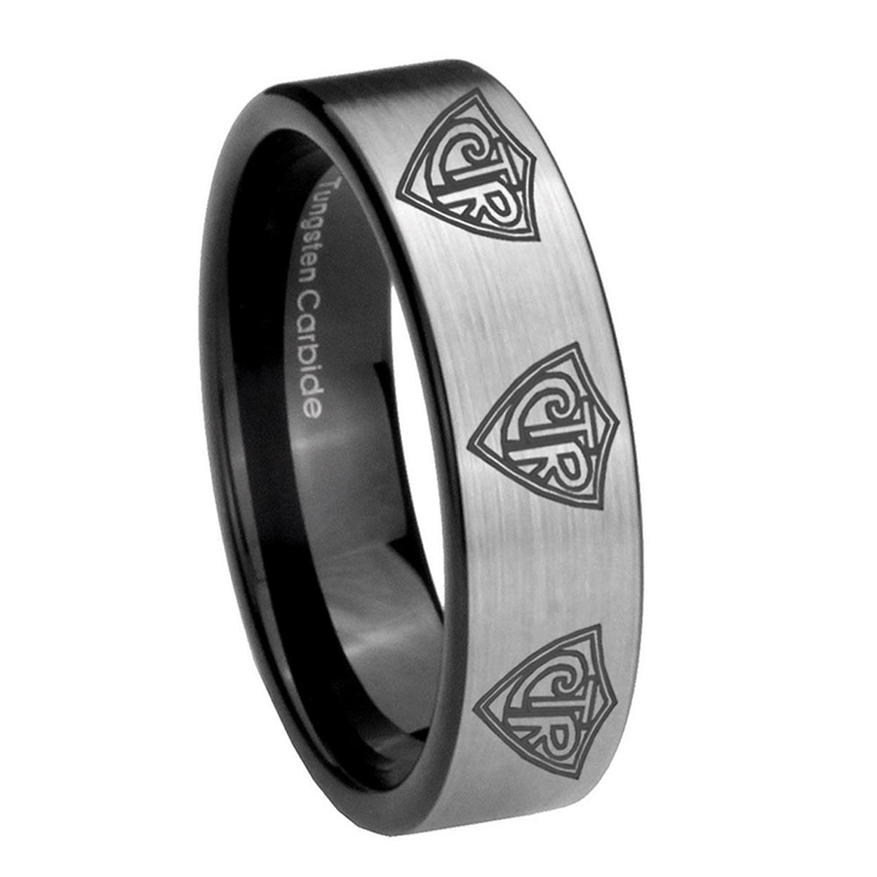 Intruding 6, 8mm Multiple CTR Pipe Cut Brushed Silver Tungsten Carbide Engagement Ring . Offer in both 6mm and 8mm band width brushed silver and black plated finished from size 5 to 14