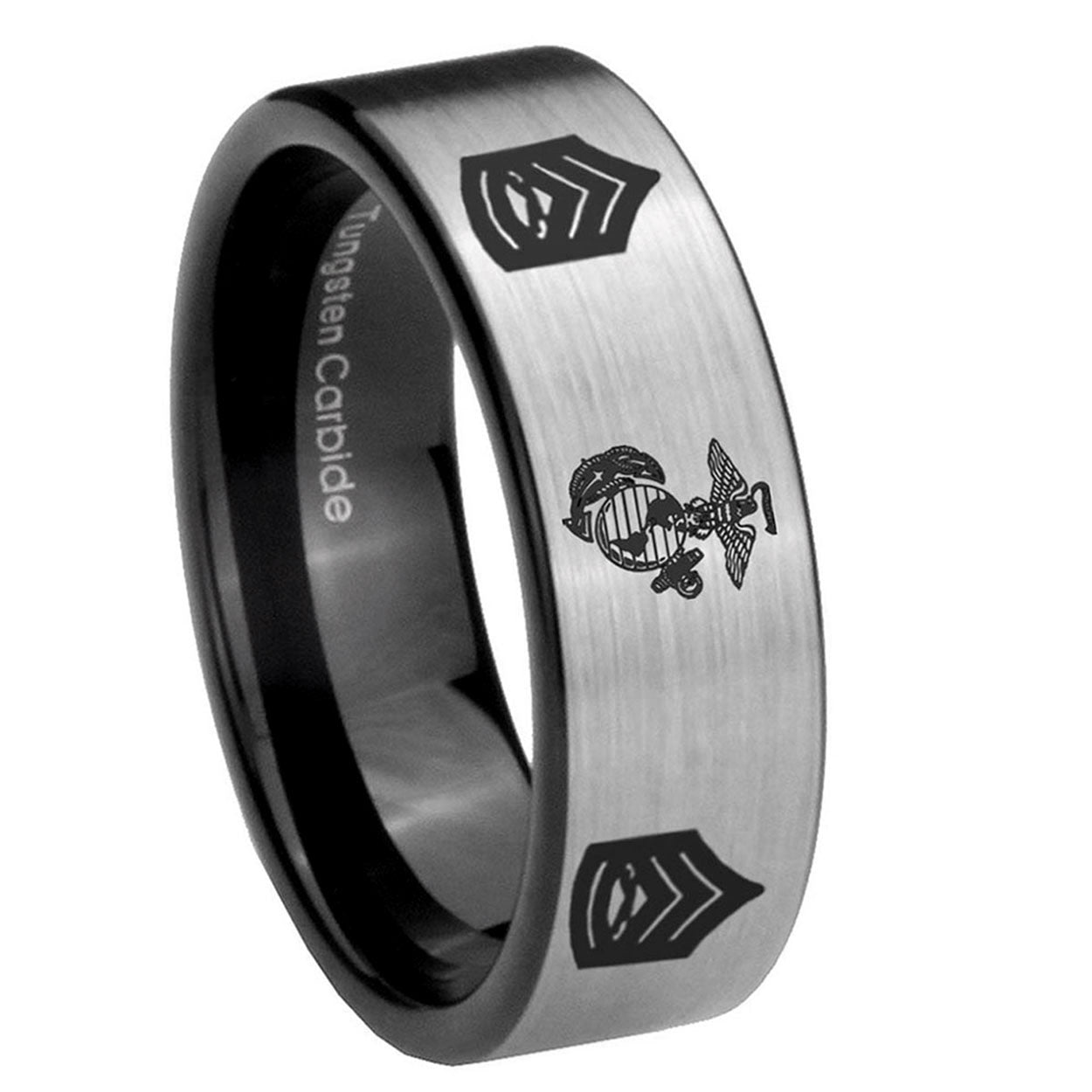 6, 8mm Marine Army Sergeant Pipe Cut Brushed Silver Tungsten Carbide Men's Promise Rings
