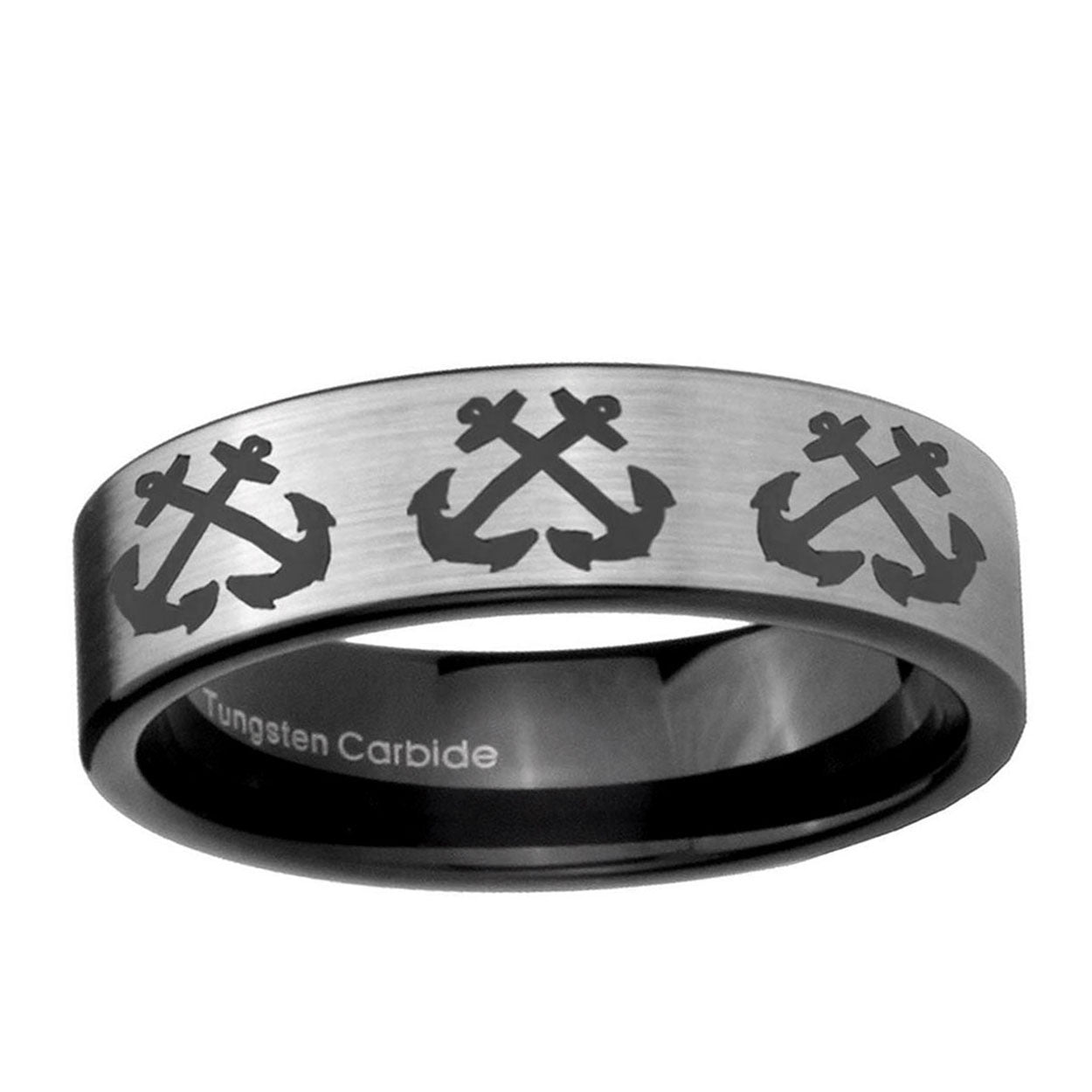 6, 8mm Multiple Anchor Pipe Cut Brushed Silver Tungsten Wedding Engagement Ring