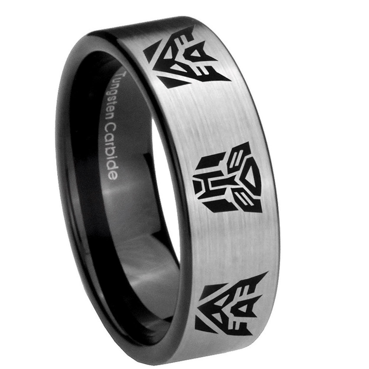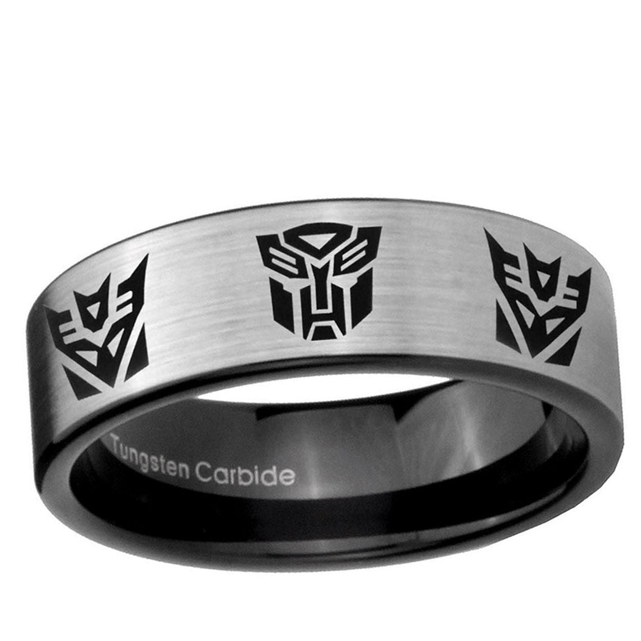 Intruding 6, 8mm Transformers Autobot Decepticon Pipe Cut Brushed Silver Tungsten Mens Wedding Band . Offer in both 6mm and 8mm band width brushed silver and black plated finished from size 5 to 14