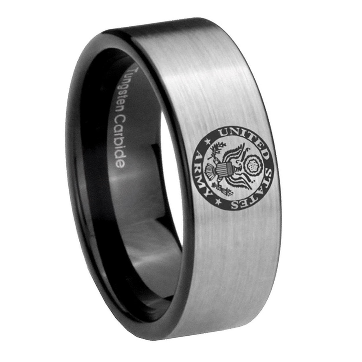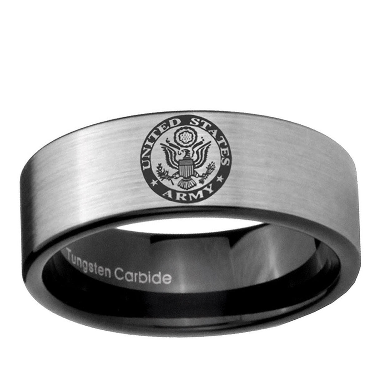 Intruding 6, 8mm U.S. Army Pipe Cut Brushed Silver Tungsten Custom Ring for Men . Offer in both 6mm and 8mm band width brushed silver and black plated finished from size 5 to 14
