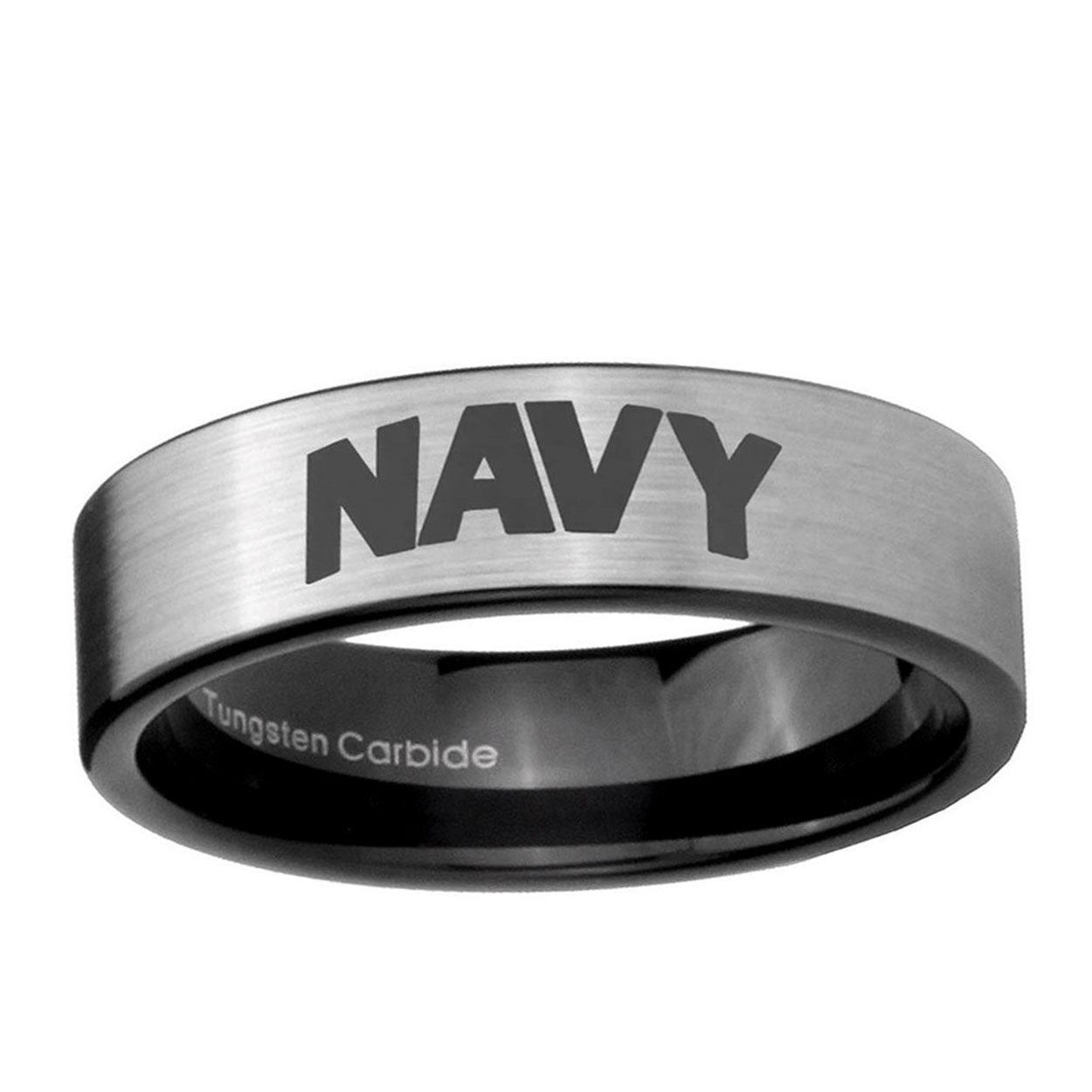 Intruding 6, 8mm Navy Pipe Cut Brushed Silver Tungsten Carbide Custom Ring for Men . Offer in both 6mm and 8mm band width brushed silver and black plated finished from size 5 to 14