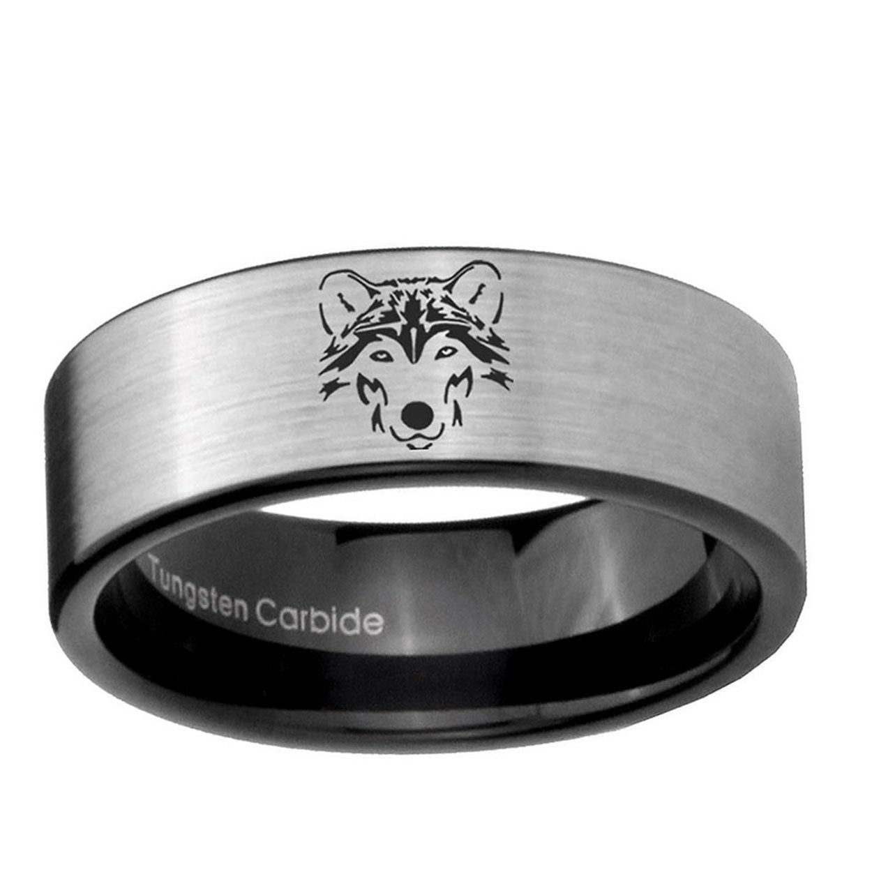 Intruding 6, 8mm Wolf Pipe Cut Brushed Silver Tungsten Carbide Engagement Ring . Offer in both 6mm and 8mm band width brushed silver and black plated finished from size 5 to 14