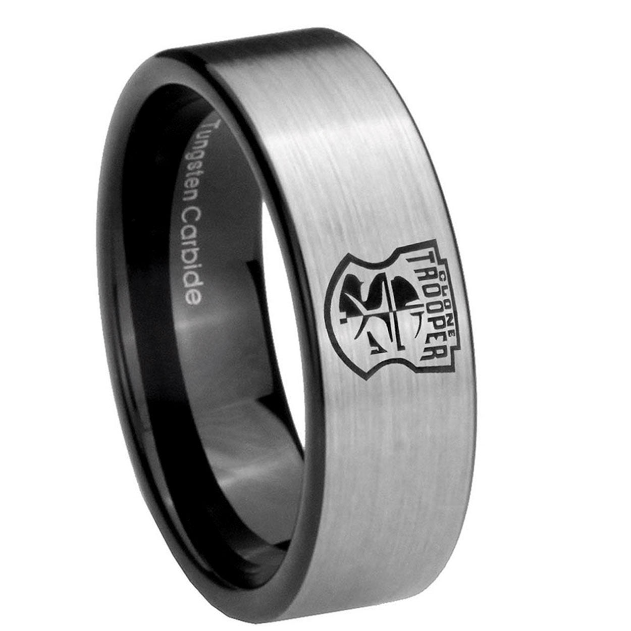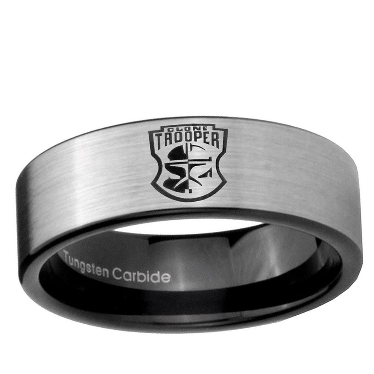 Intruding 6, 8mm Clone Trooper Pipe Cut Brushed Silver Tungsten Personalized Ring . Offer in both 6mm and 8mm band width brushed silver and black plated finished from size 5 to 14