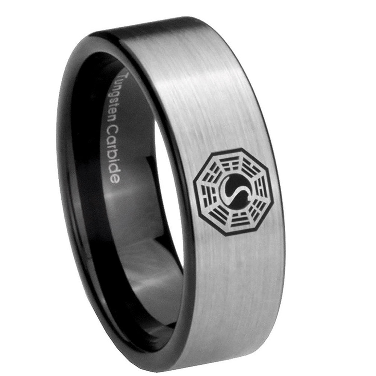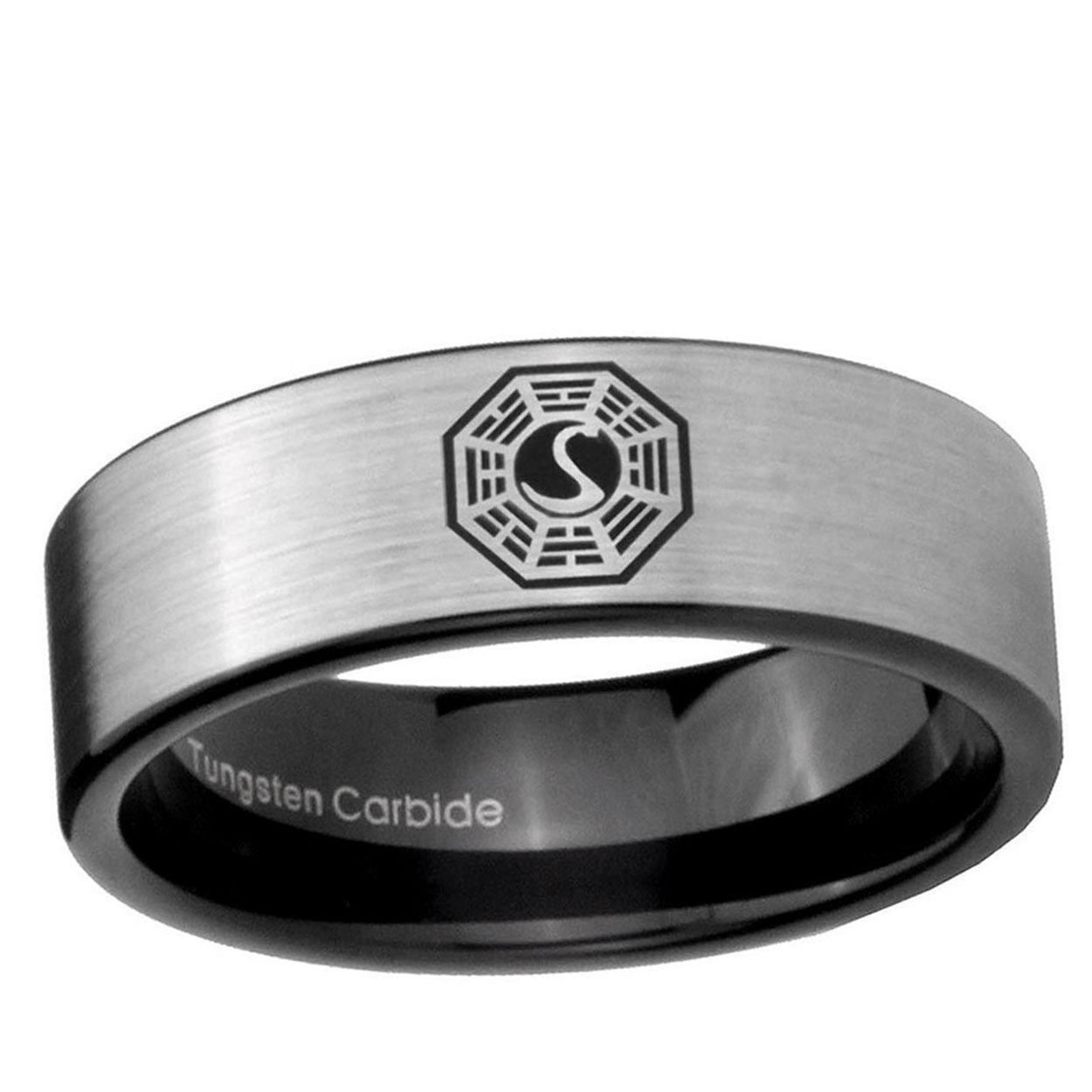 Intruding 6, 8mm Lost Dharma Pipe Cut Brushed Silver Tungsten Carbide Men's Engagement Band . Offer in both 6mm and 8mm band width brushed silver and black plated finished from size 5 to 14