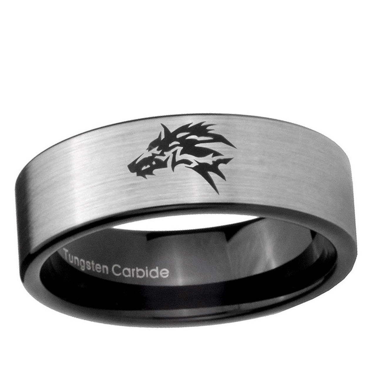 Intruding 6, 8mm Wolf Pipe Cut Brushed Silver Tungsten Carbide Men's Engagement Ring . Offer in both 6mm and 8mm band width brushed silver and black plated finished from size 5 to 14