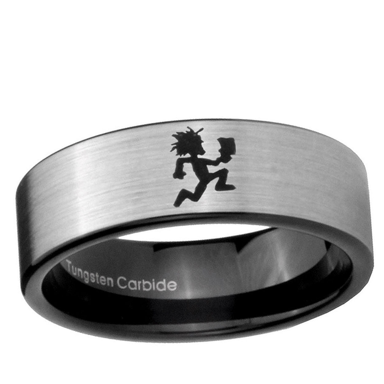 Intruding 6, 8mm Hatchet Man Pipe Cut Brushed Silver Tungsten Carbide Mens Promise Ring . Offer in both 6mm and 8mm band width brushed silver and black plated finished from size 5 to 14