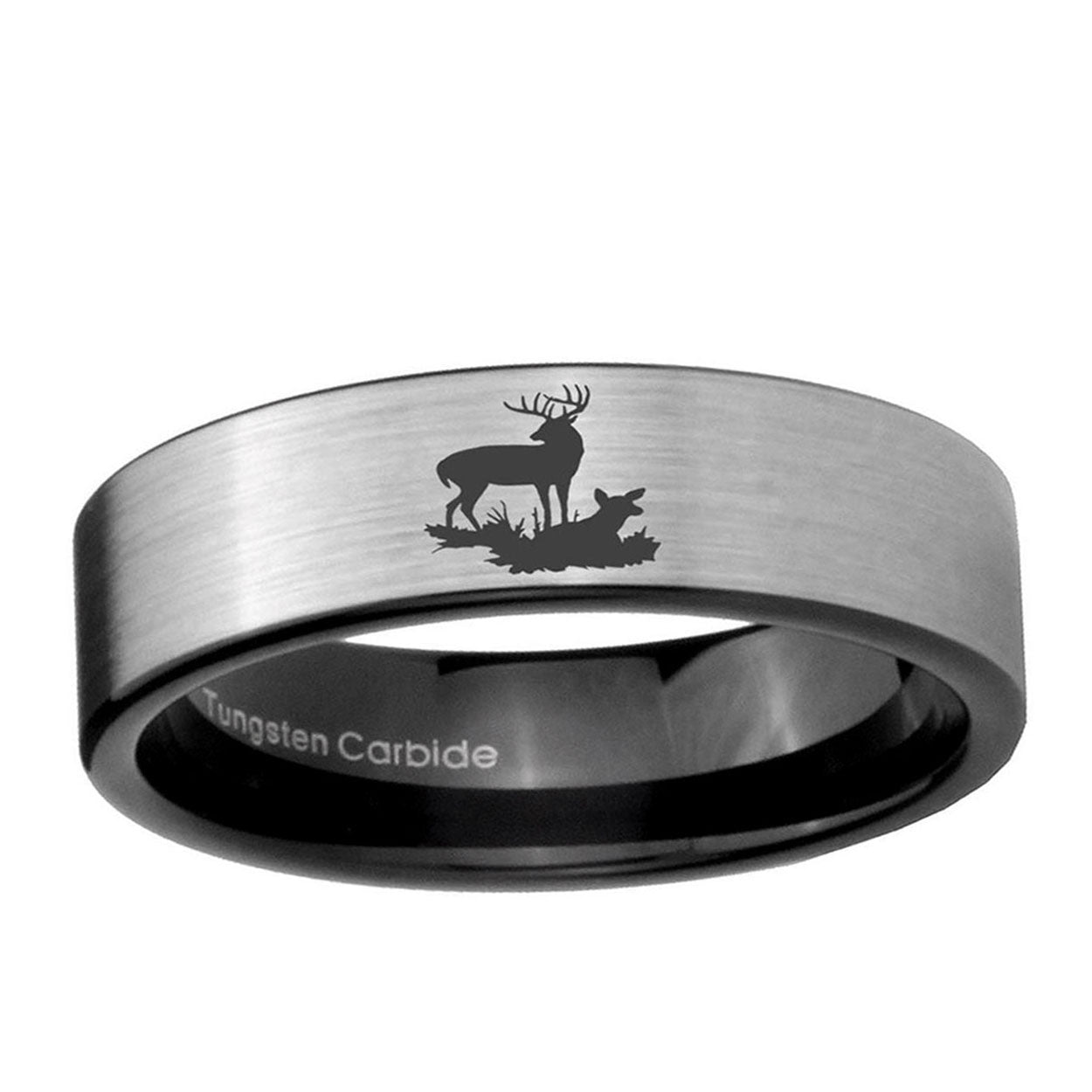 Intruding 6, 8mm Deer Hunting Pipe Cut Brushed Silver Tungsten Carbide Mens Bands Ring . Offer in both 6mm and 8mm band width brushed silver and black plated finished from size 5 to 14