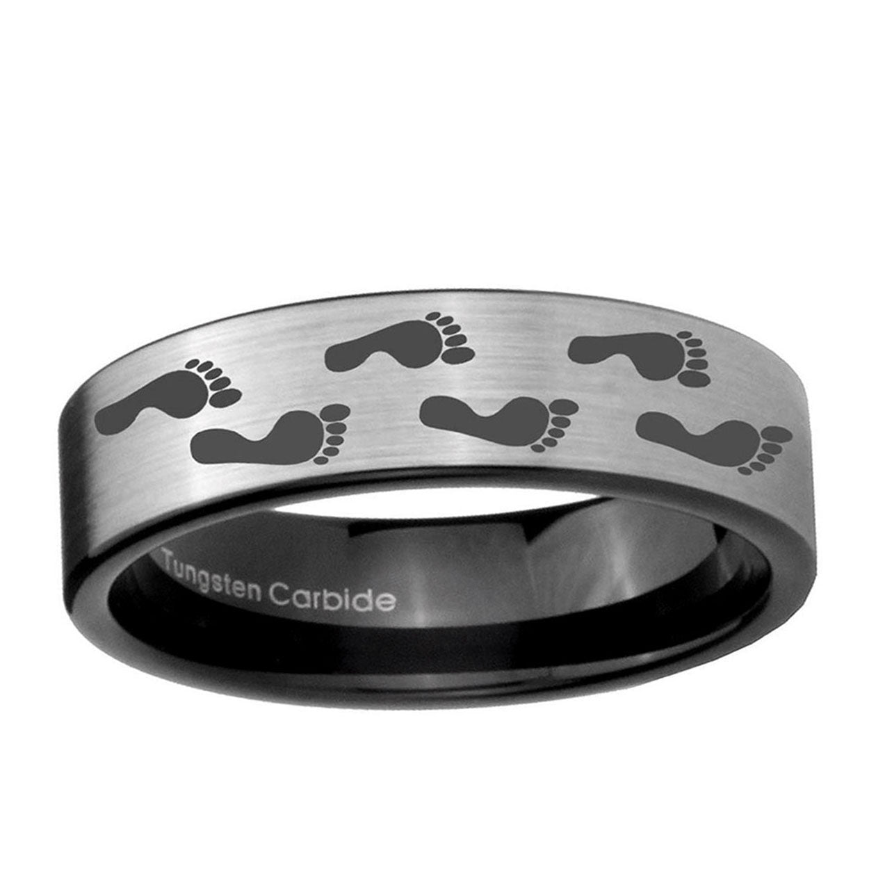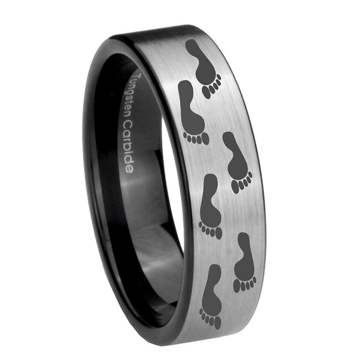 6, 8mm Foot Print Pipe Cut Brushed Silver Tungsten Carbide Men's Engagement Ring
