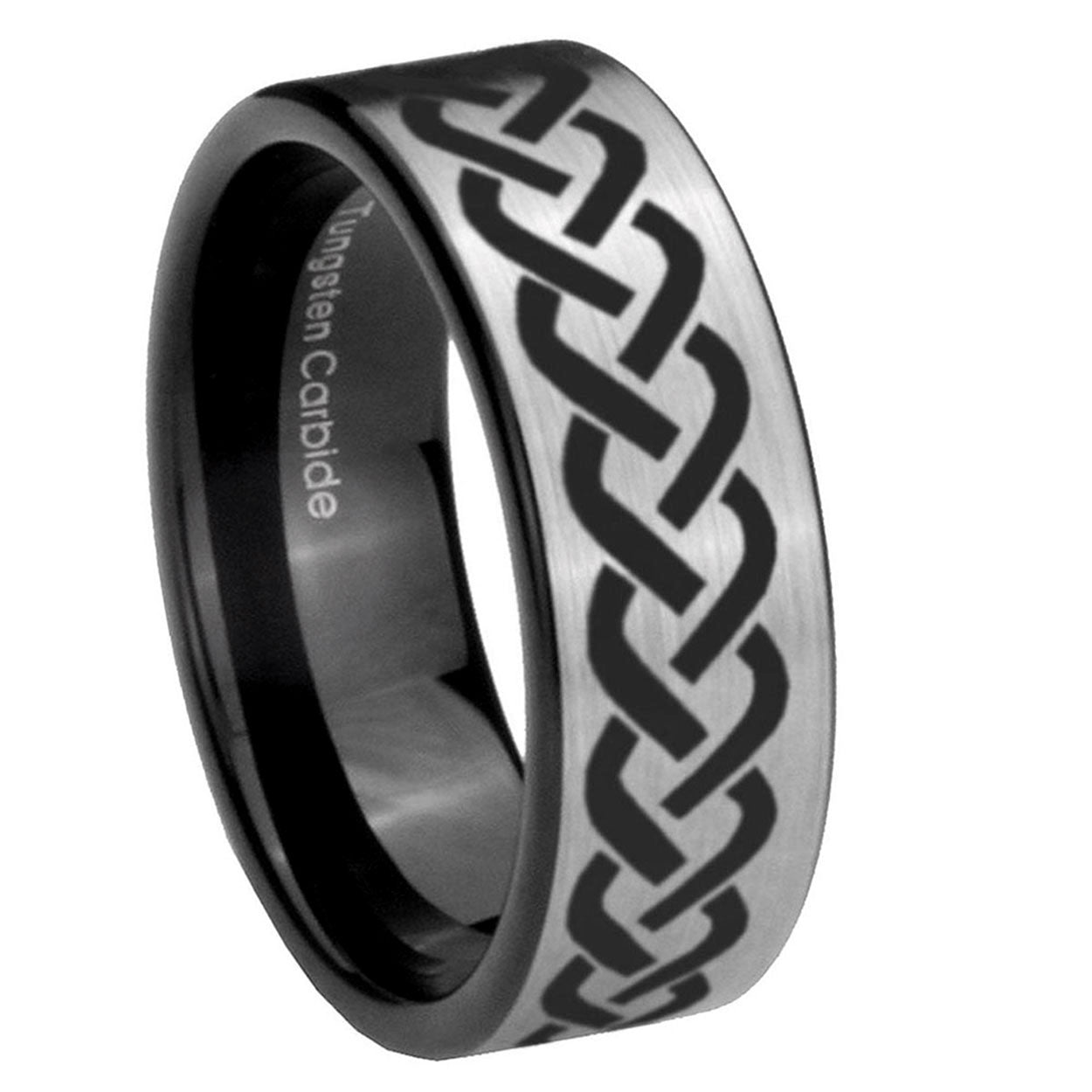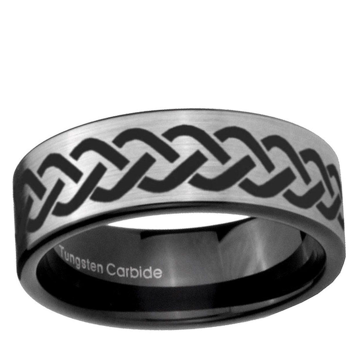 Intruding 6, 8mm Laser Celtic Knot Pipe Cut Brushed Silver Tungsten Custom Ring for Men . Offer in both 6mm and 8mm band width brushed silver and black plated finished from size 5 to 14