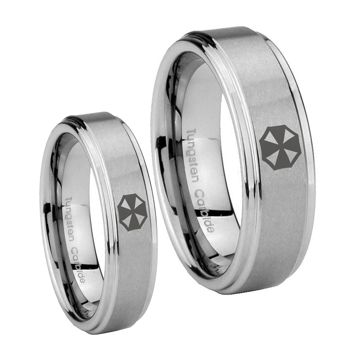 His and Hers Resident Evil Step Edges Brushed Tungsten Men's Bands Ring Set