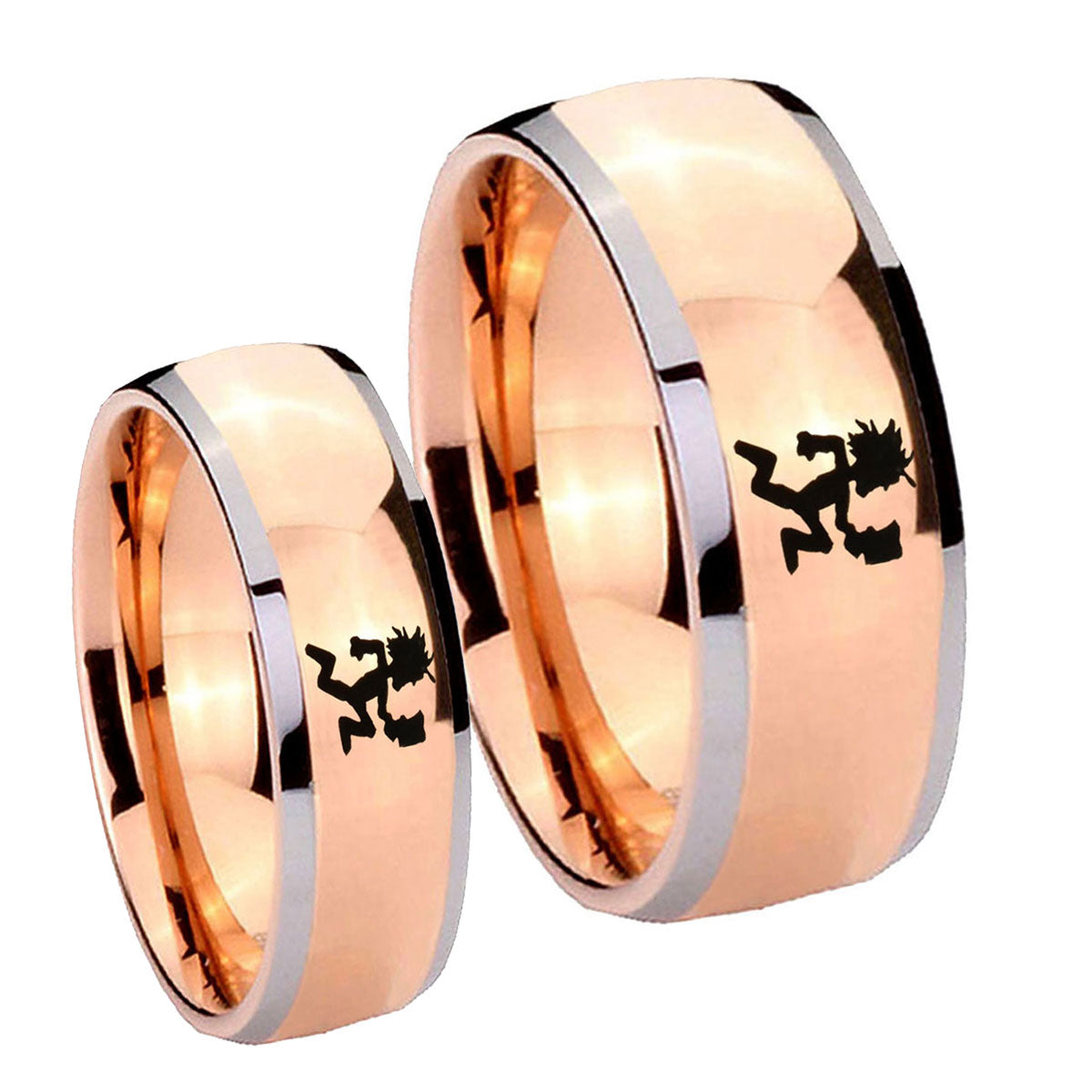 Bride and Groom Hatchet Man Dome Rose Gold Tungsten Mens Engagement Ring Set