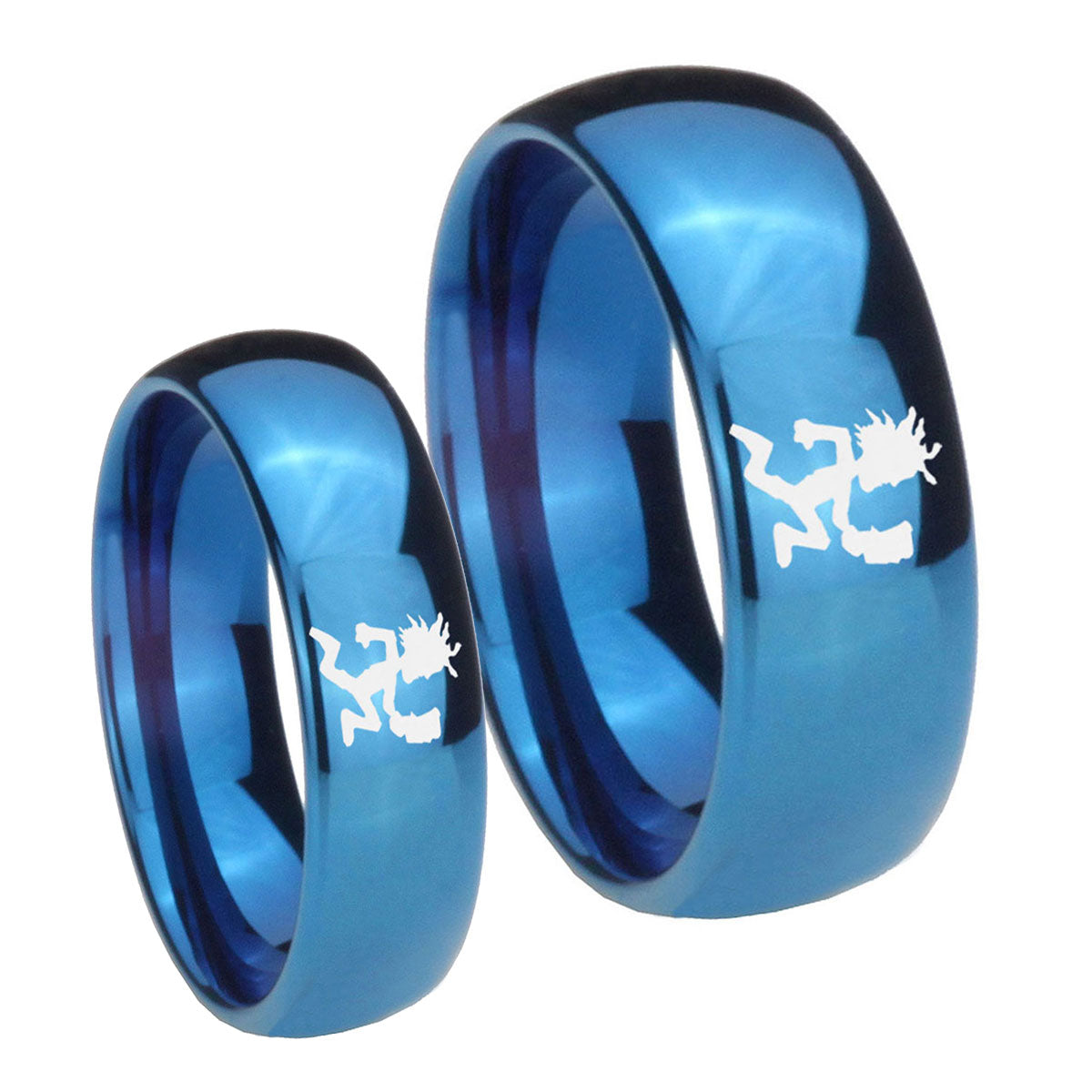 Celebrate with our His And Hers Hatchet Man Beveled Edges Blue 2 Tone Tungsten Carbide Engagement Band, vibrant and music-inspired.