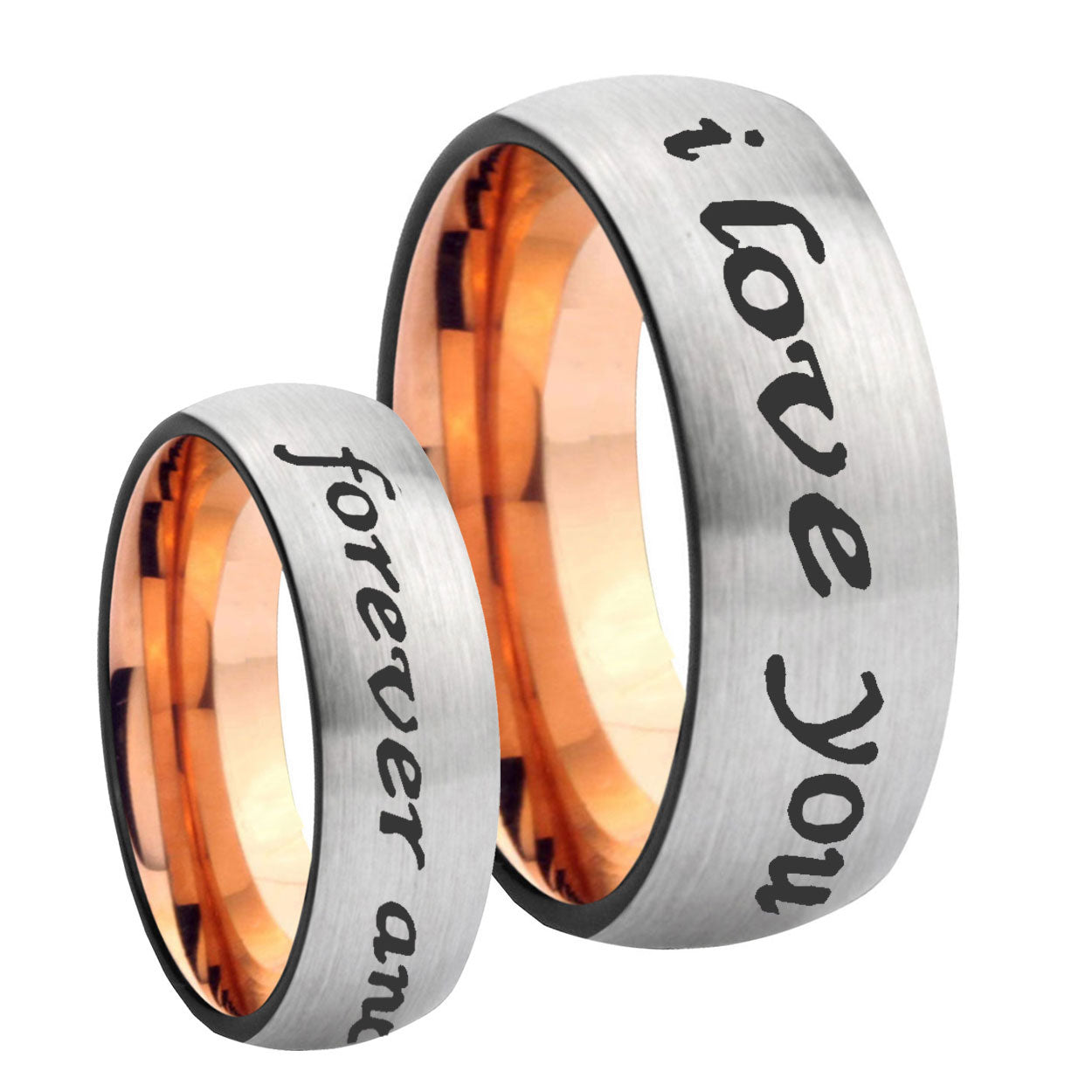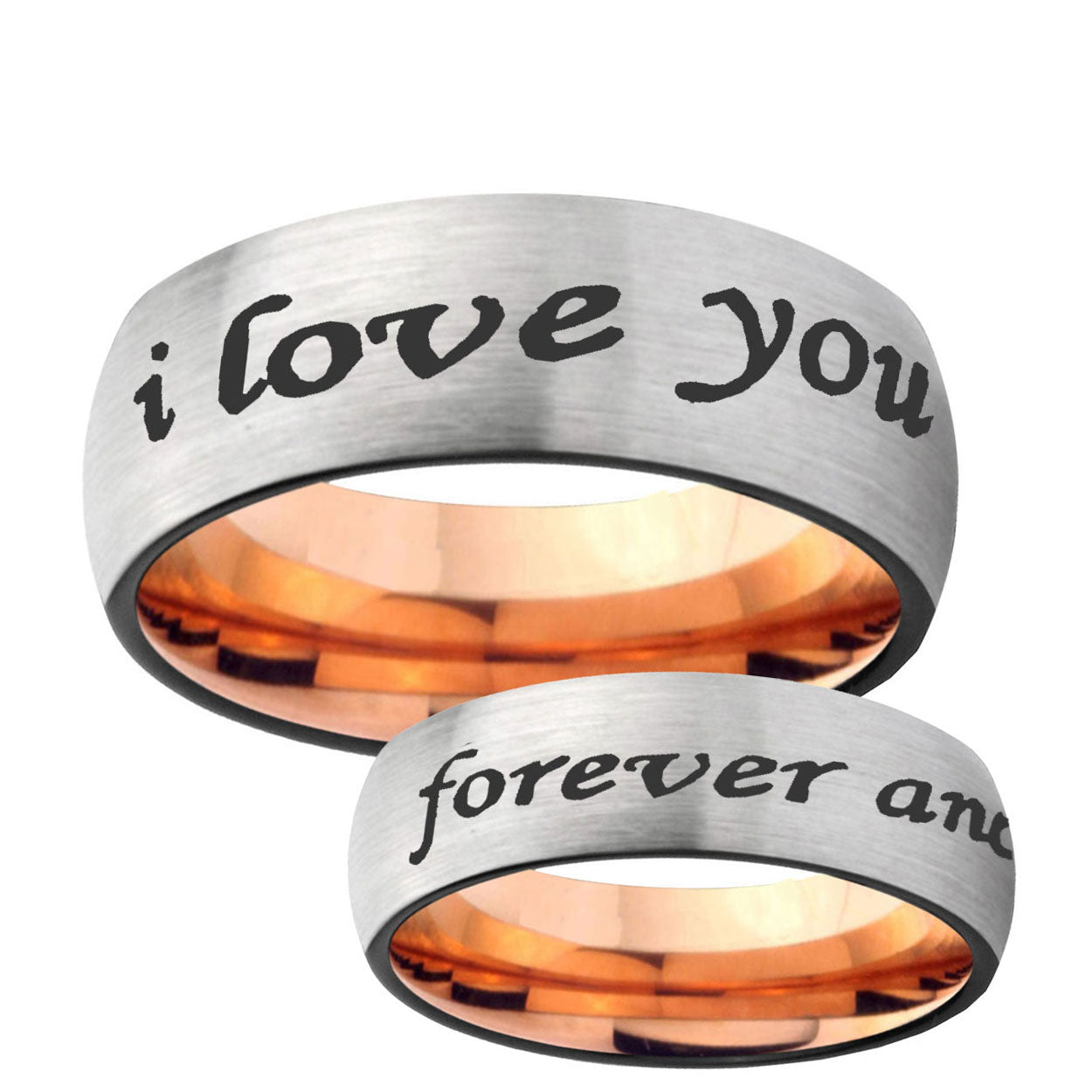 Intruding 6, 8mm I Love You Forever and ever Dome Gray And Rose Gold Tungsten Wedding Engraving Ring . Offer in both 6mm and 8mm band width gray and rose gold plated finished from size 5 to 14