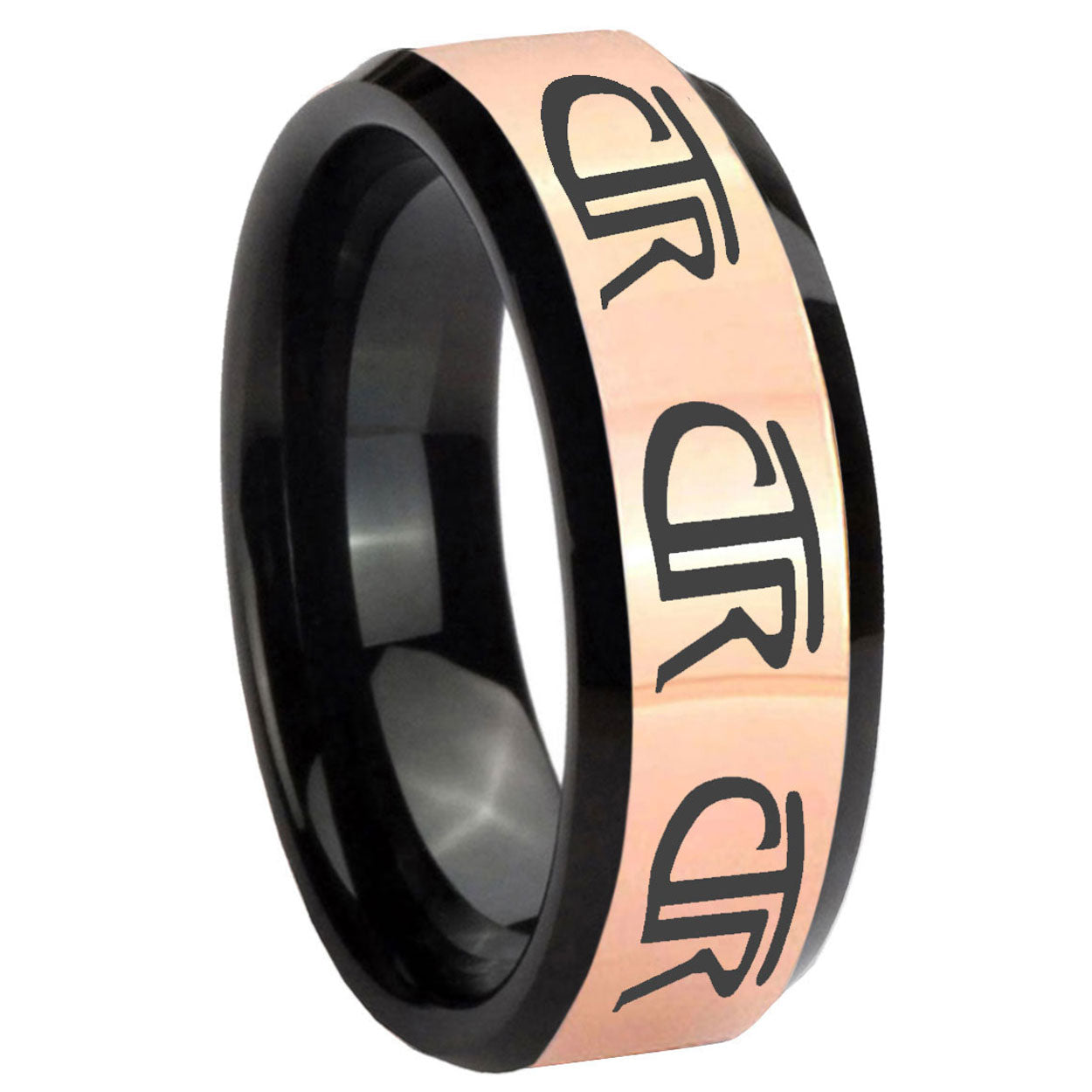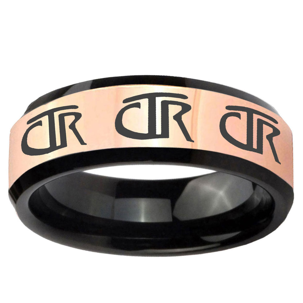 8mm Multiple CTR Rose Gold And Black Beveled Edge Tungsten Carbide Men's Promise Ring