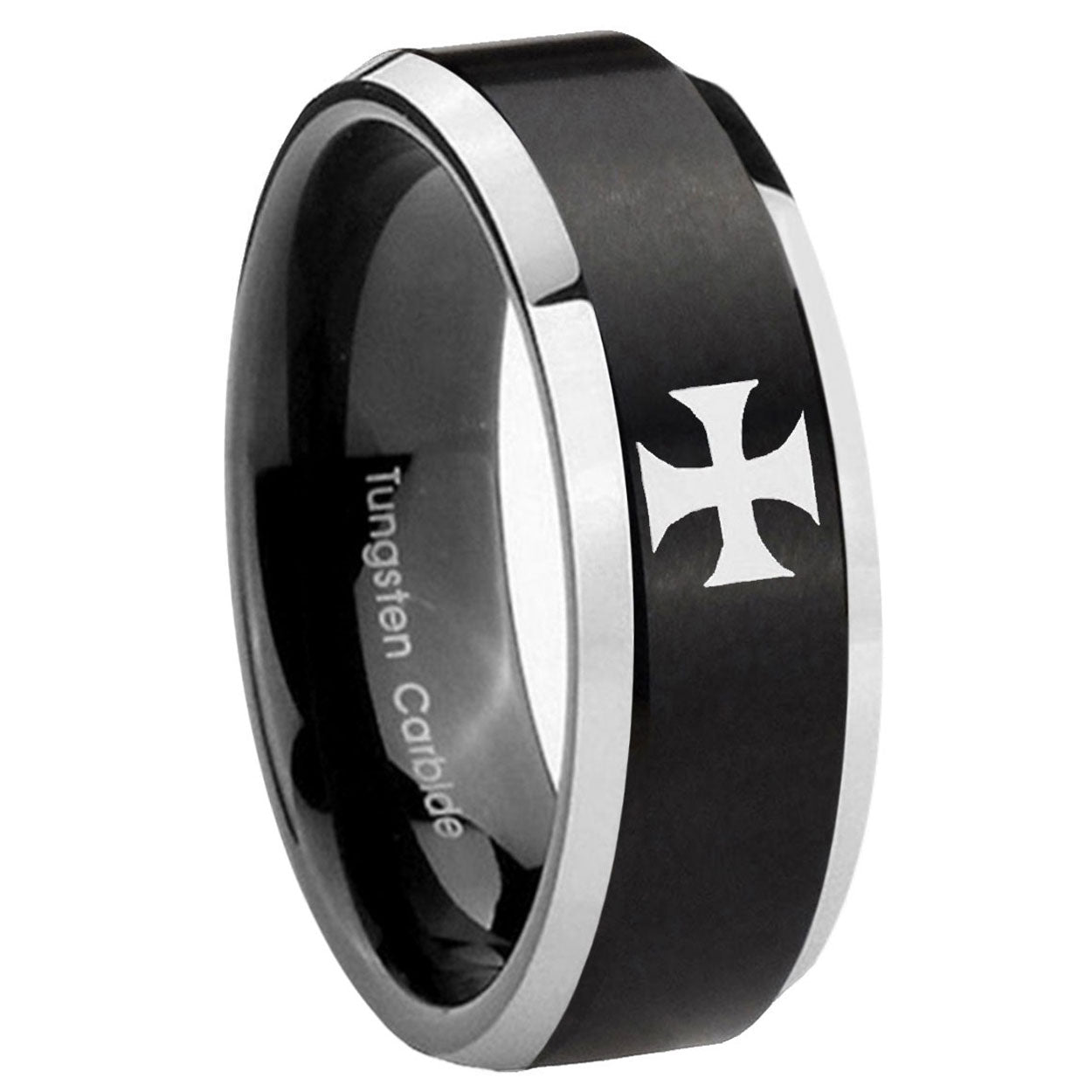 Buy the His And Hers Maltese Cross Dome Glossy Black 2 Tone Tungsten Carbide Anniversary Ring. Bold and sleek.