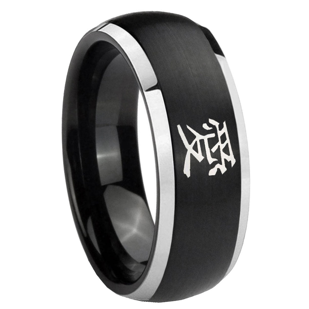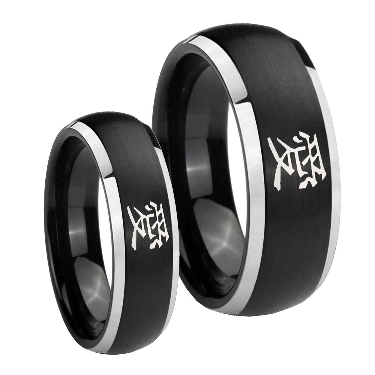 His Hers Kanji Love Dome Brushed Black 2 Tone Tungsten Wedding Ring Set