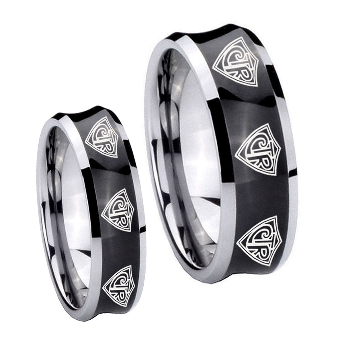 Bride and Groom Multiple CTR Concave Black Tungsten Personalized Ring Set
