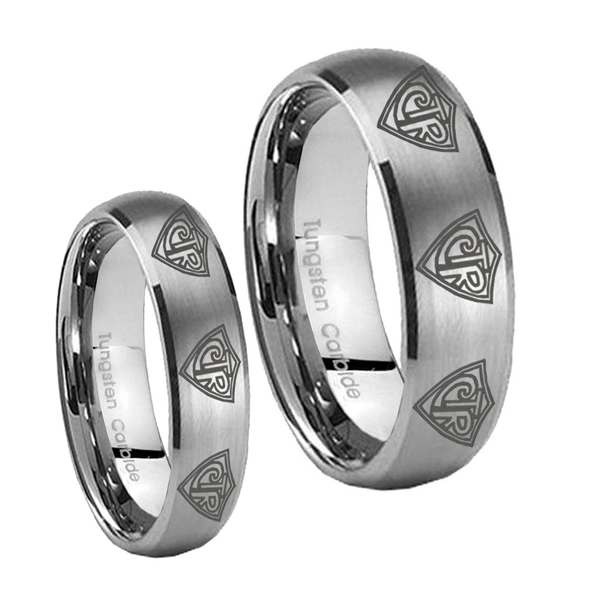 Bride and Groom Multiple CTR Dome Brushed Tungsten Carbide Personalized Ring Set