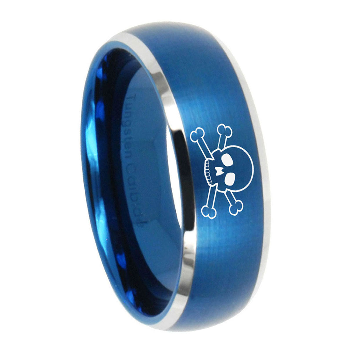 His Hers Skull Dome Brushed Blue 2 Tone Tungsten Mens Anniversary Ring Set