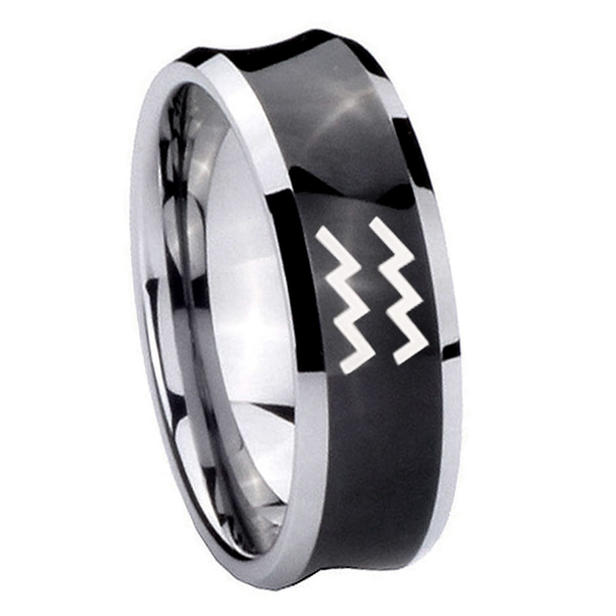 Buy the His And Hers Aquarius Horoscope Beveled Edges Brush Black Tungsten Men's Ring Personalized. Unique design.
