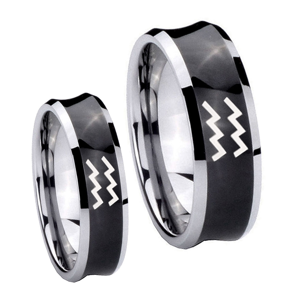 His Hers Aquarius Horoscope Concave Black Tungsten Men's Engagement Ring Set