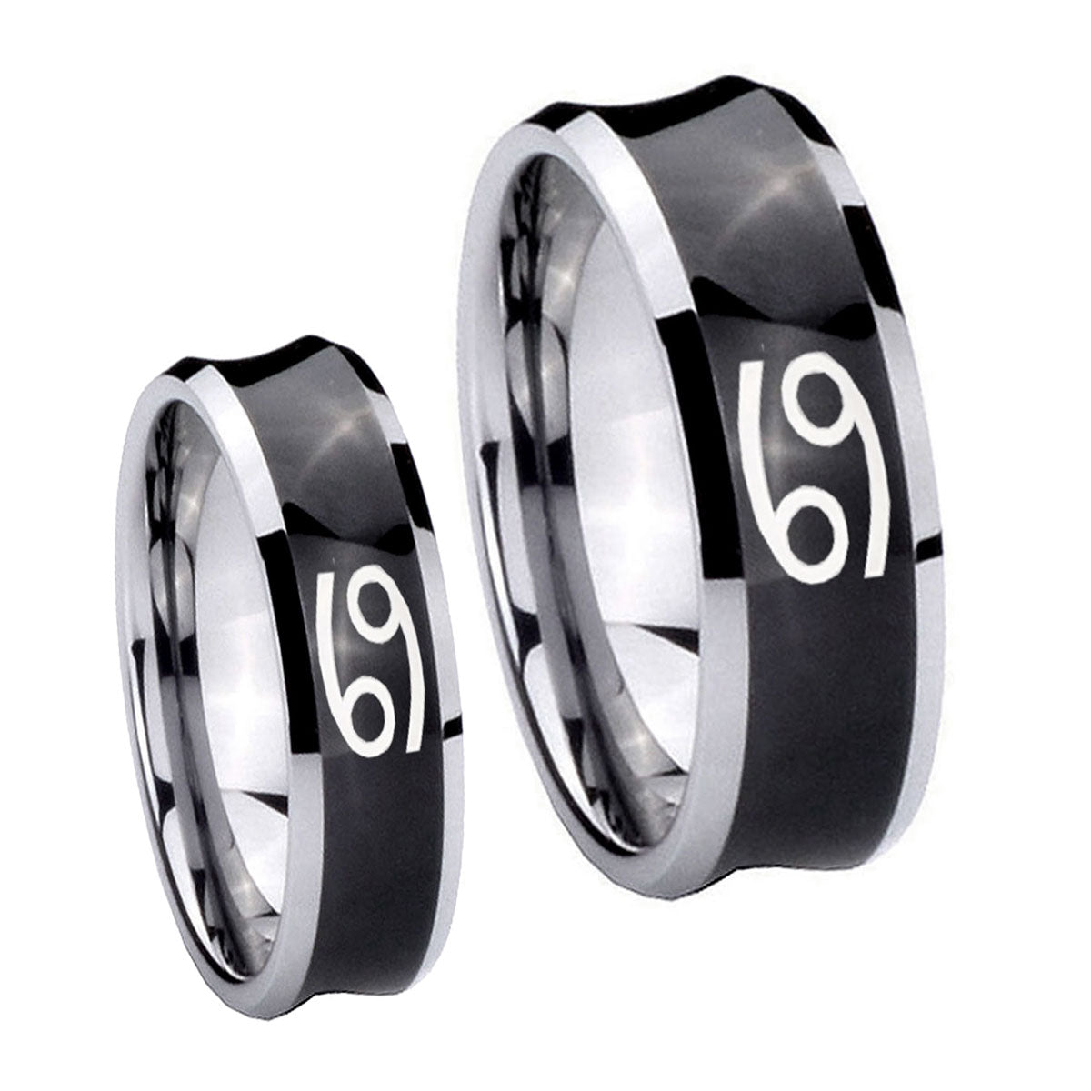 His and Hers Cancer Horoscope Concave Black Tungsten Men's Promise Rings Set