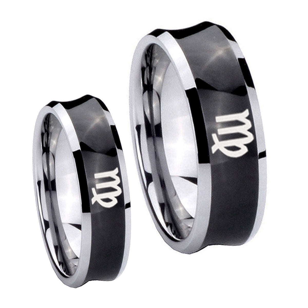Bride and Groom Virgo Zodiac Concave Black Tungsten Personalized Ring Set