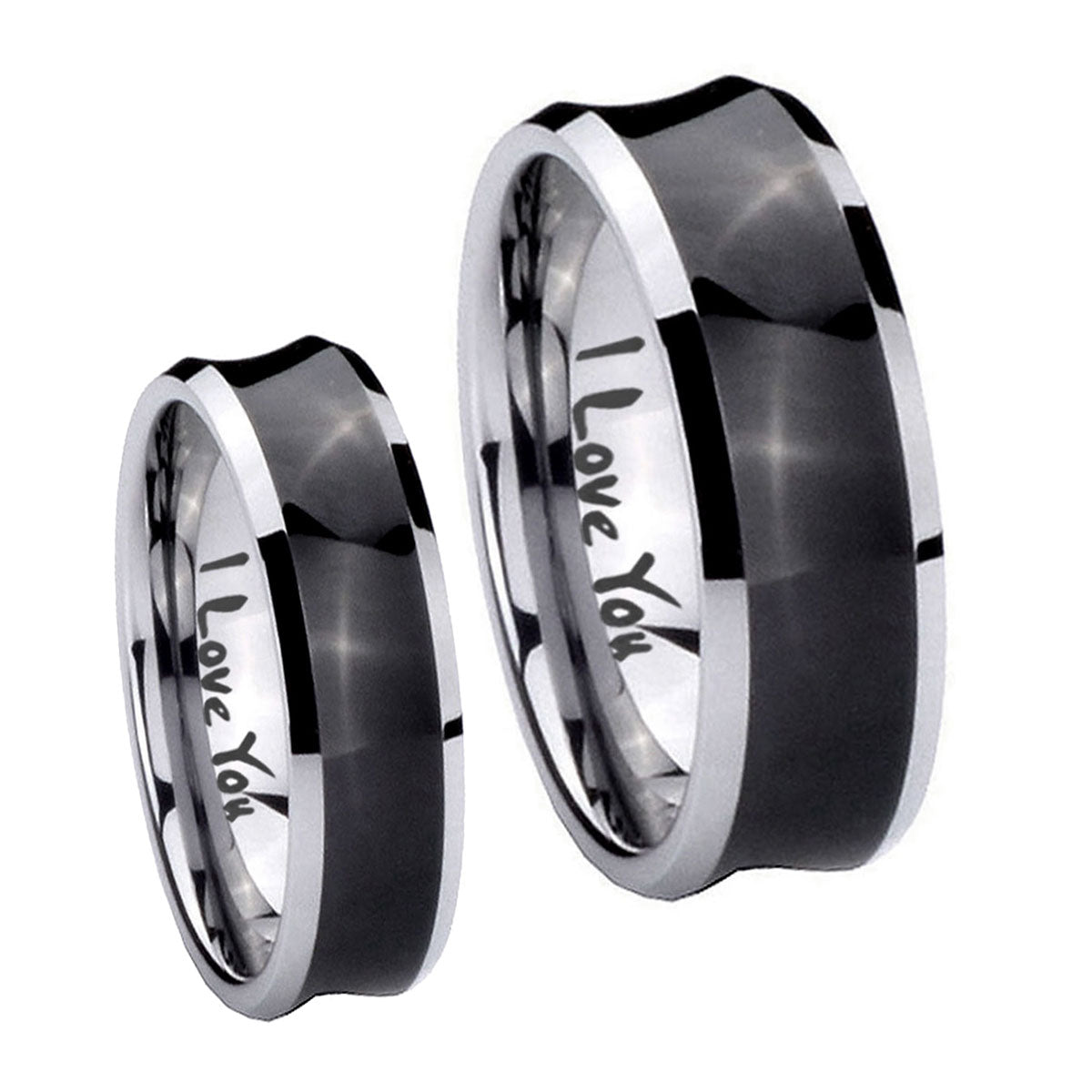 Bride and Groom I Love You Concave Black Tungsten Wedding Engagement Ring Set