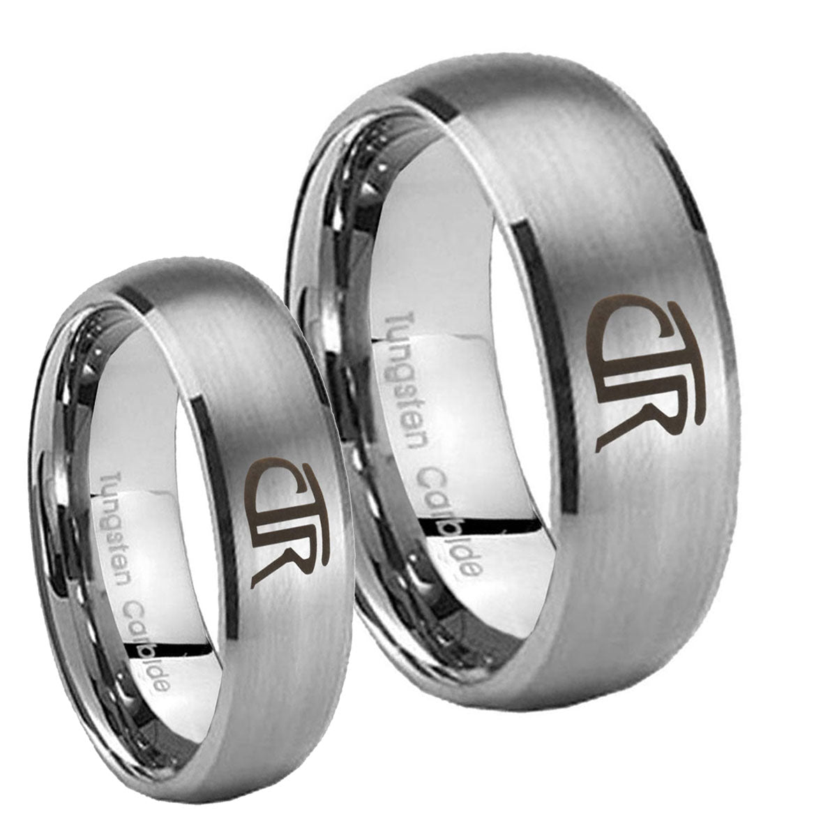 Bride and Groom CTR Dome Brushed Tungsten Carbide Men's Ring Set
