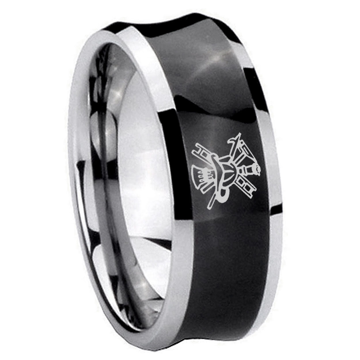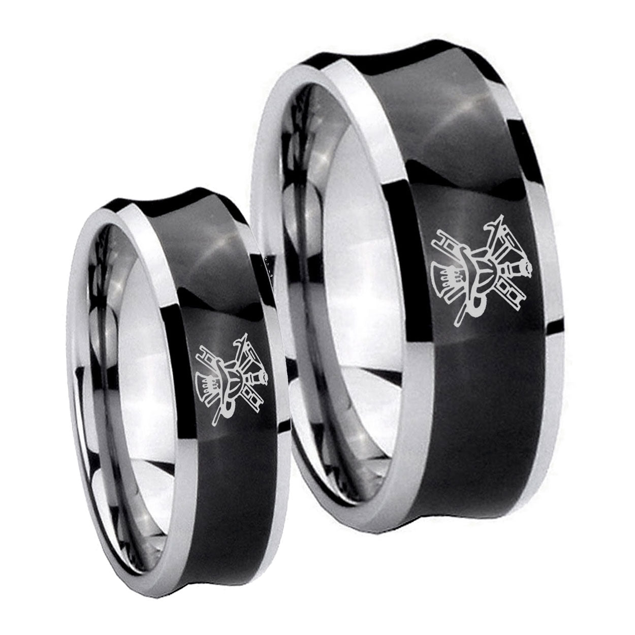 Bride and Groom Fireman Concave Black Tungsten Wedding Engraving Ring Set