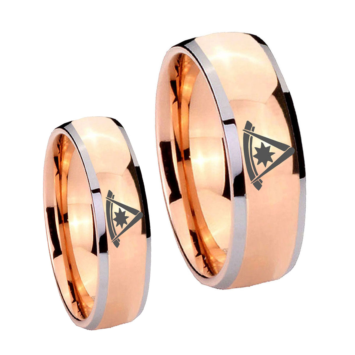 His Hers Pester Master Masonic Dome Rose Gold Tungsten Men's Engagement Ring Set