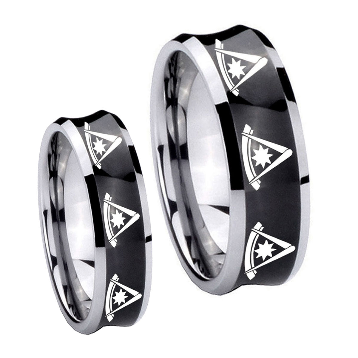 His Hers Multiple Pester Master Masonic Concave Black Tungsten Men's Ring Set